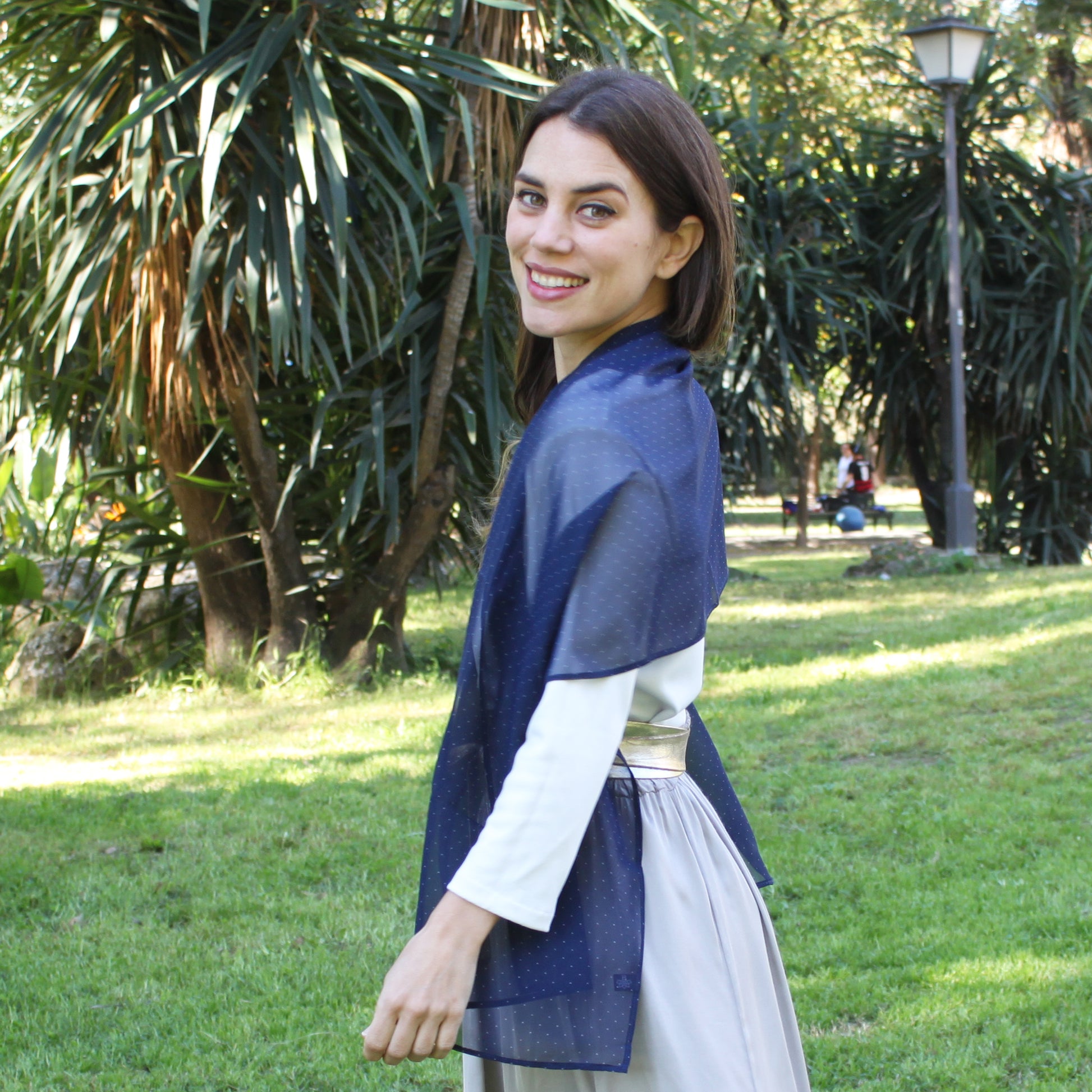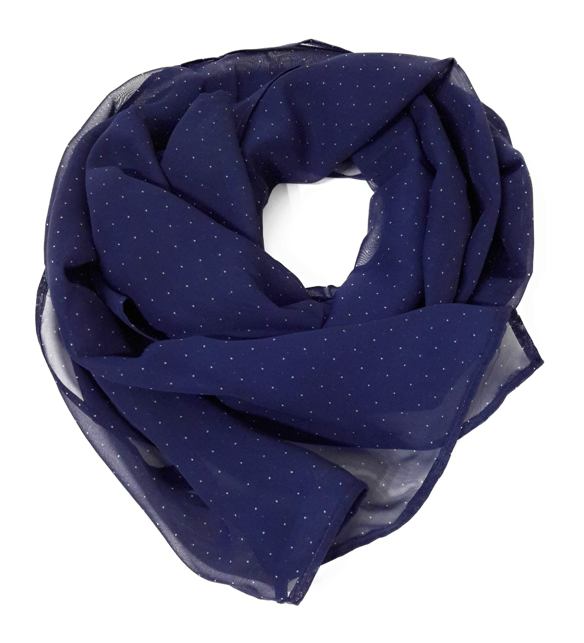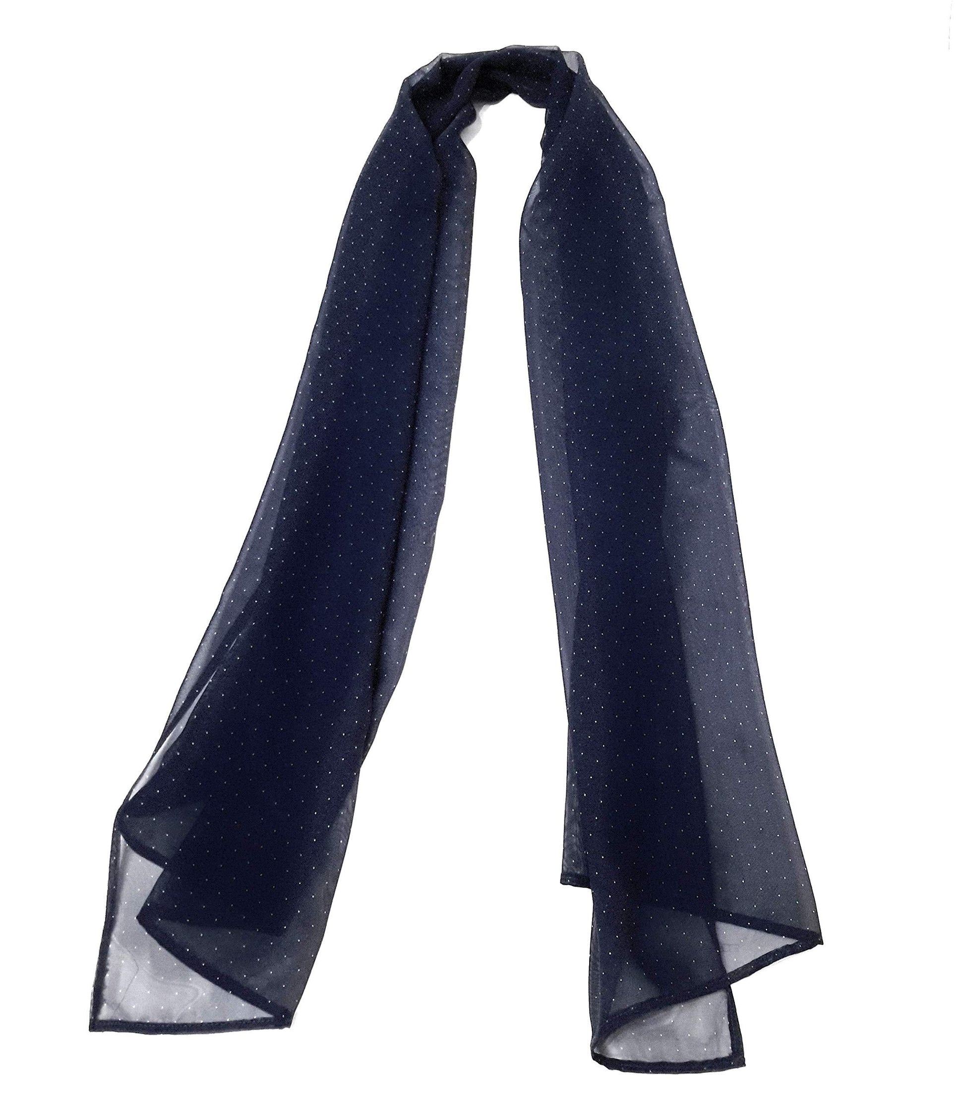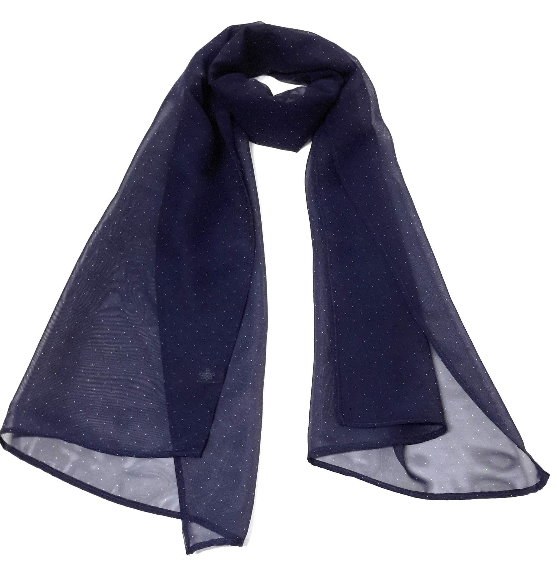 Chal de Fiesta Chifón · Azul Marino con Lunares Blancos (50x150cm)