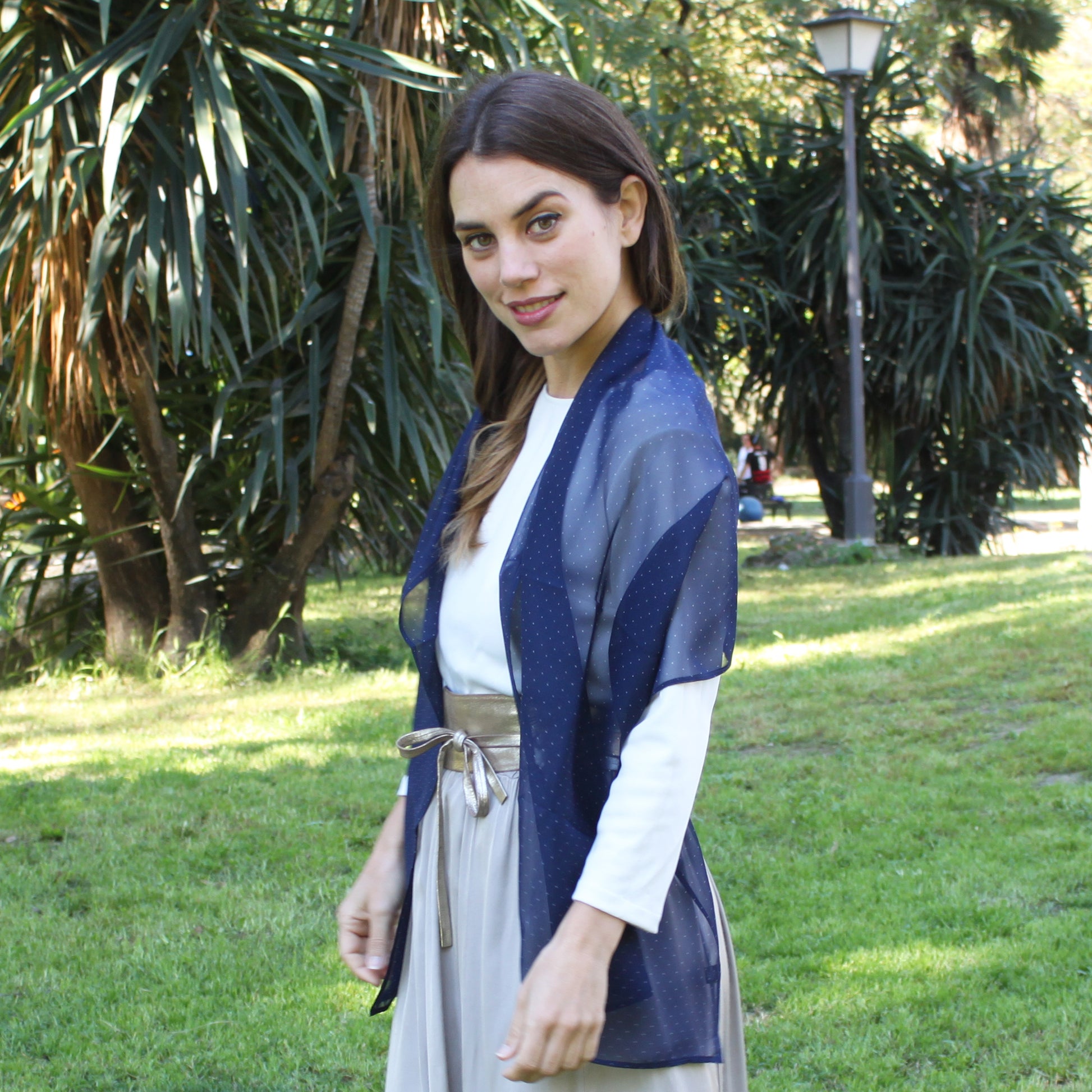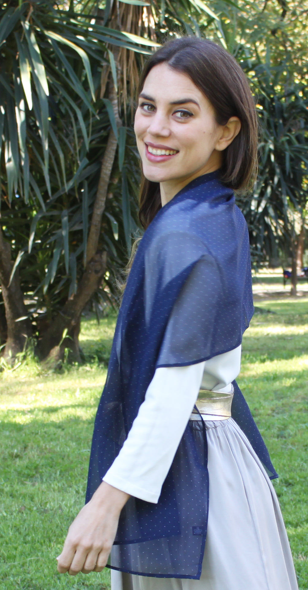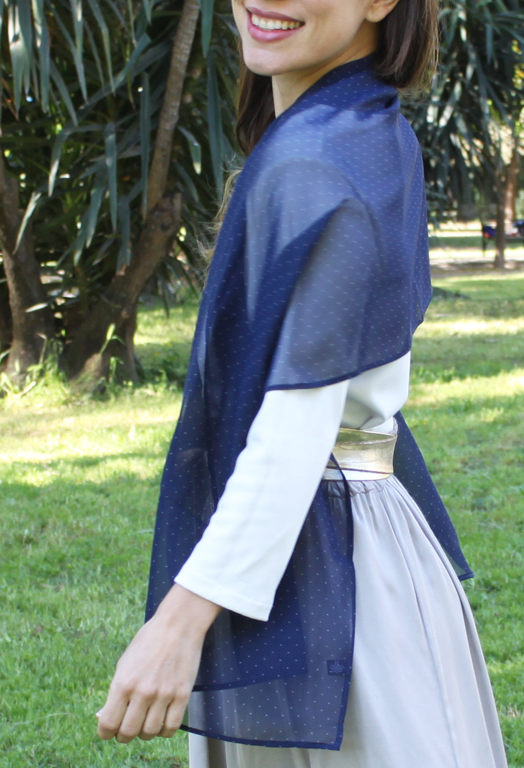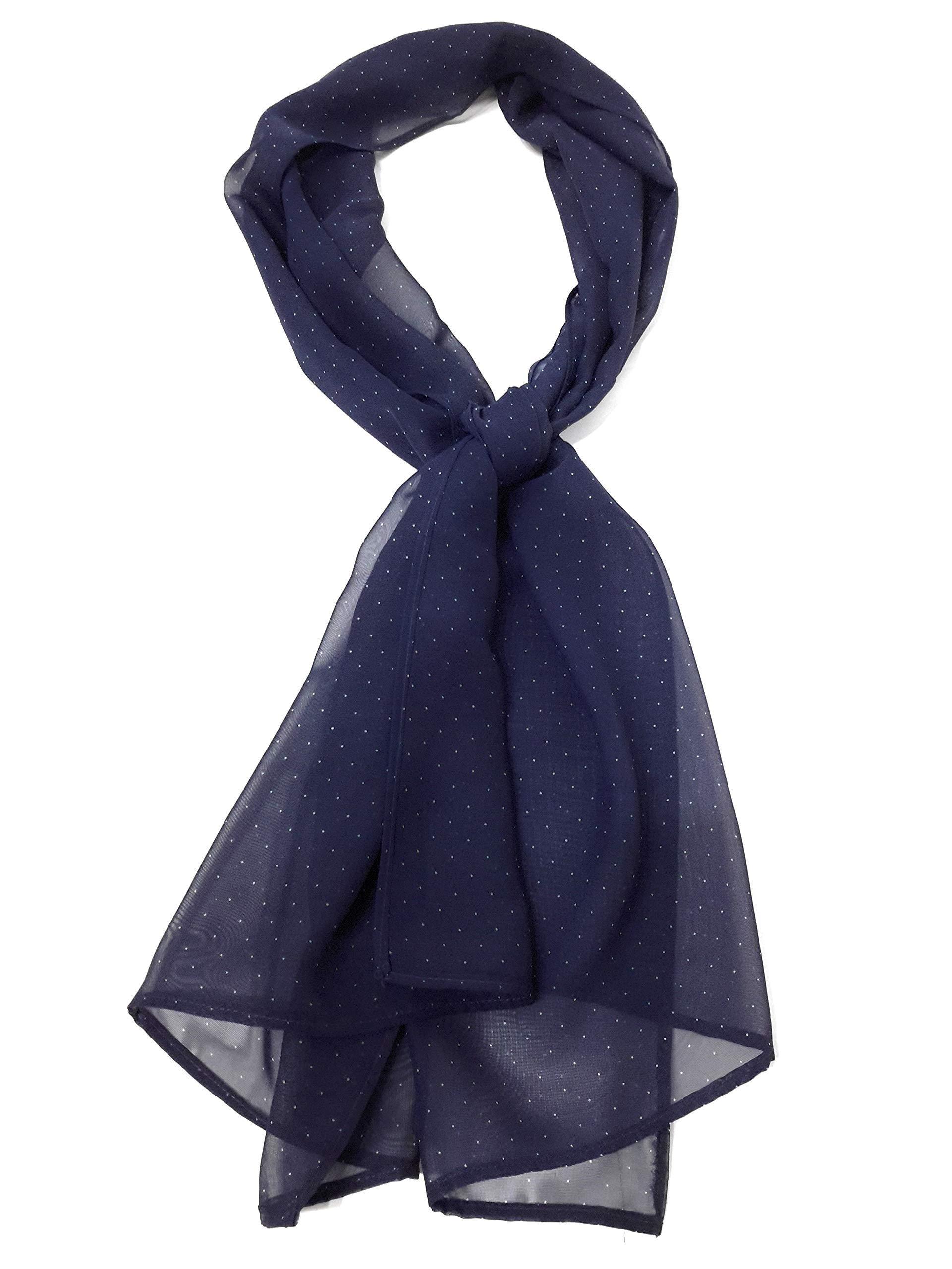 Chal de Fiesta Chifón · Azul Marino con Lunares Blancos (50x150cm)