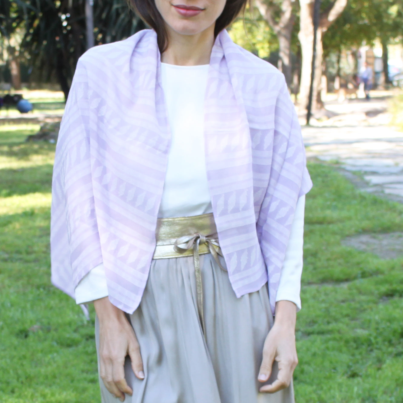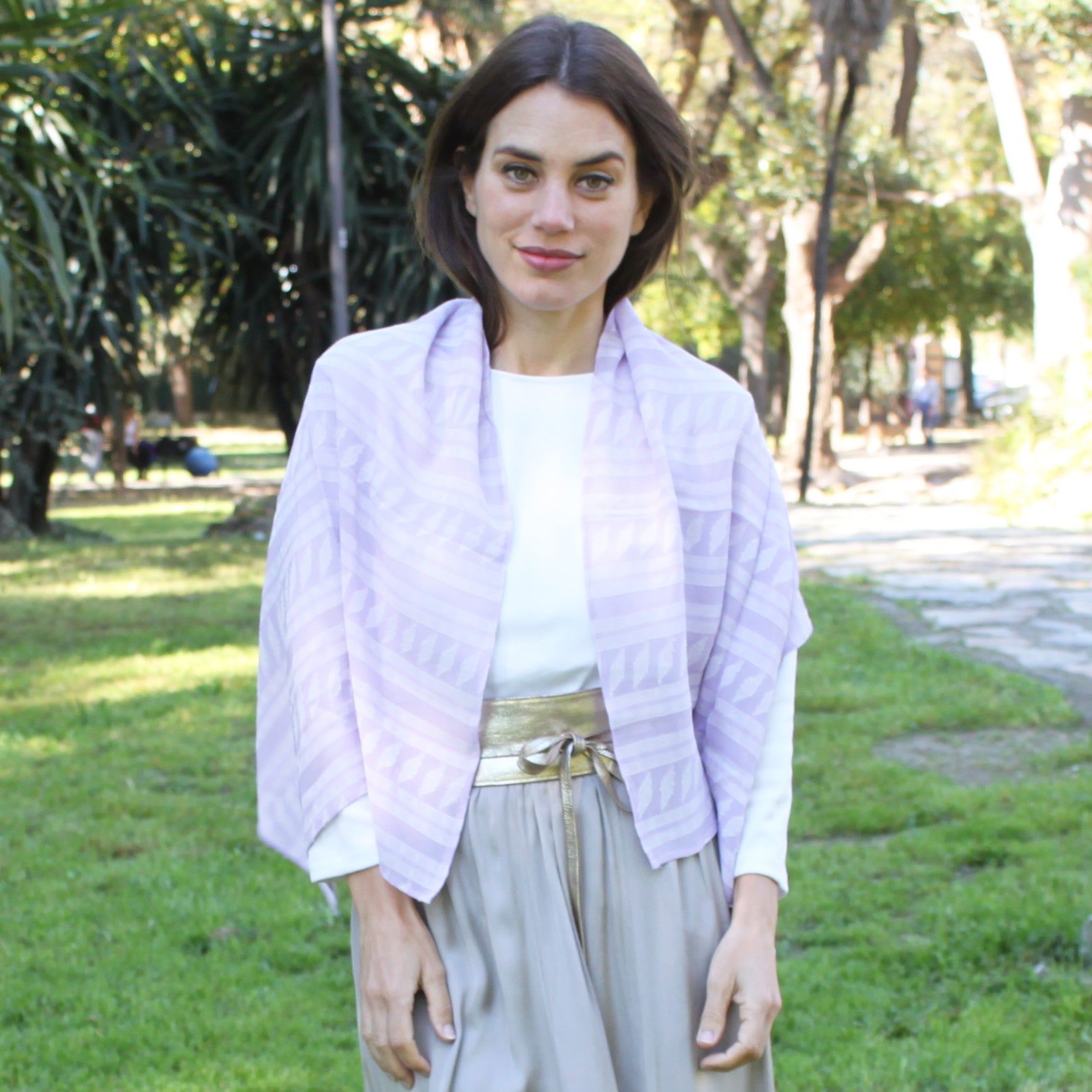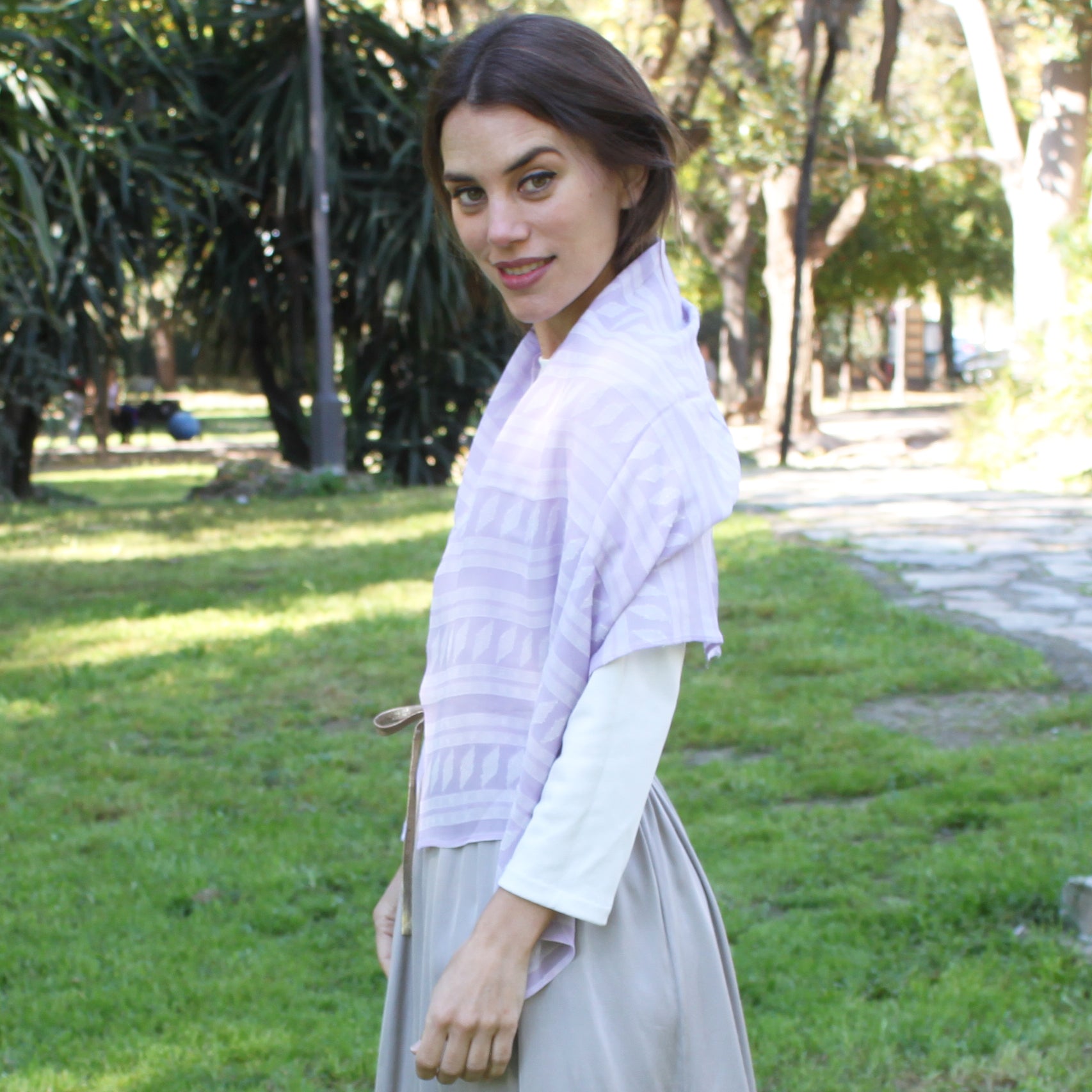 - Versátil y ligero: perfecto para llevar sobre los hombros o anudar como pañuelo