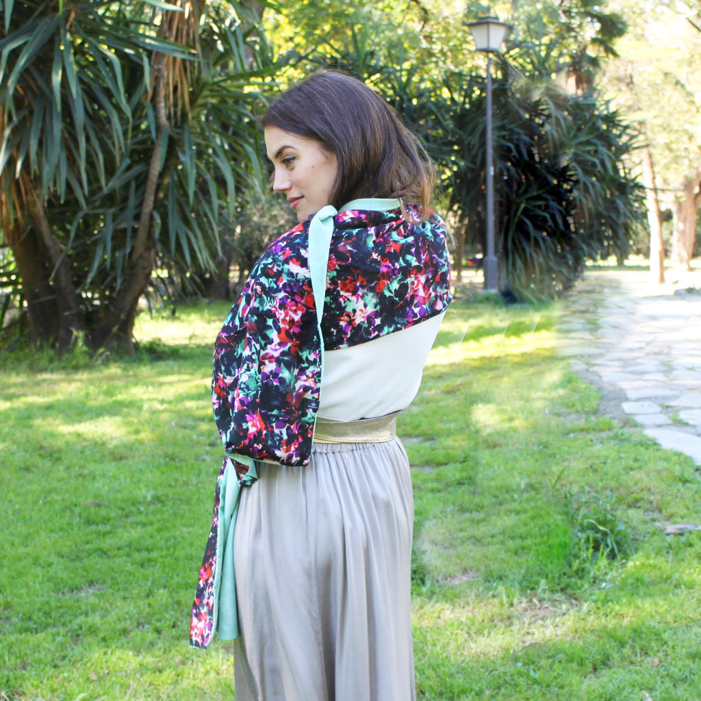 Chal grande estampado reversible · Floral / Verde Agua (40x200cm)