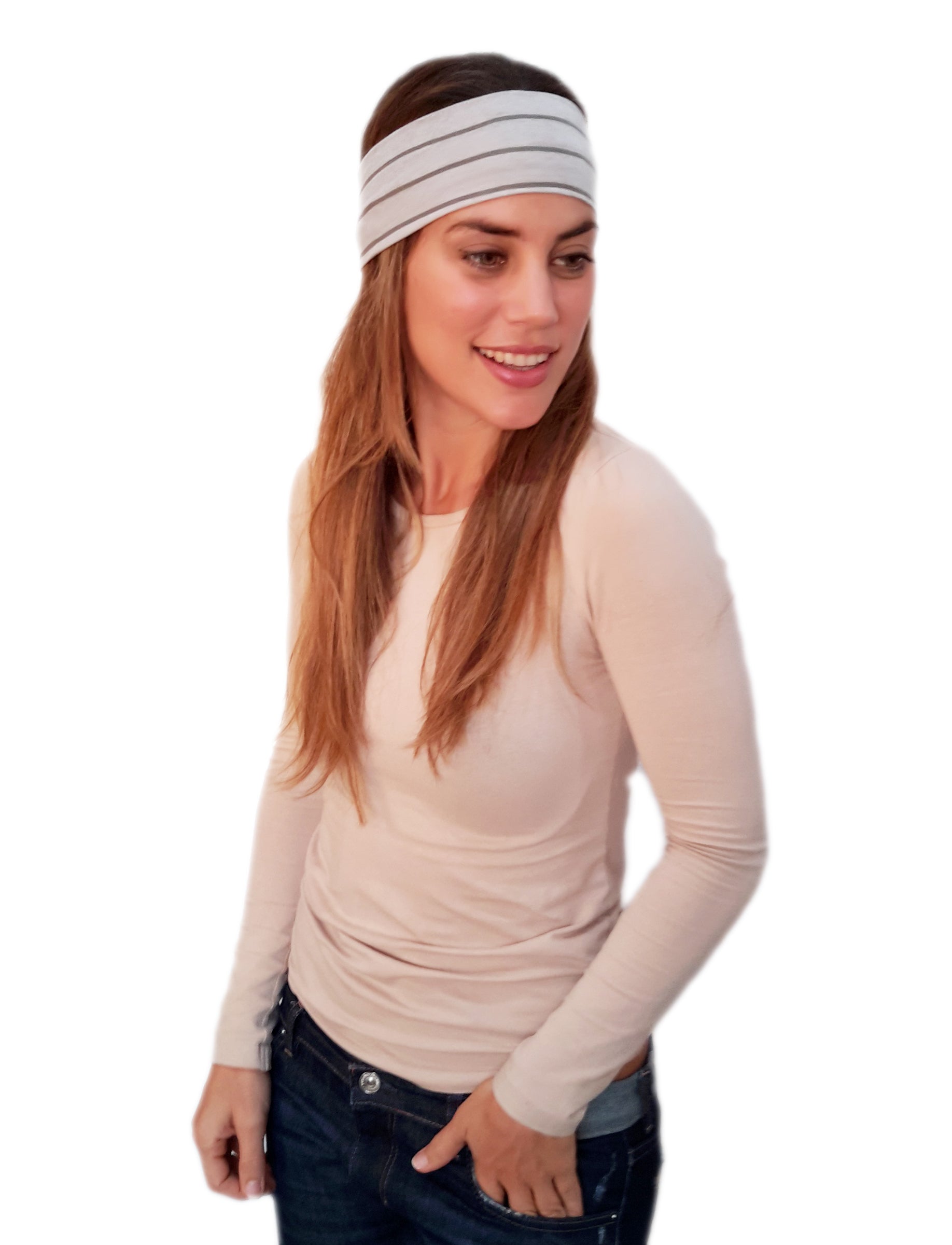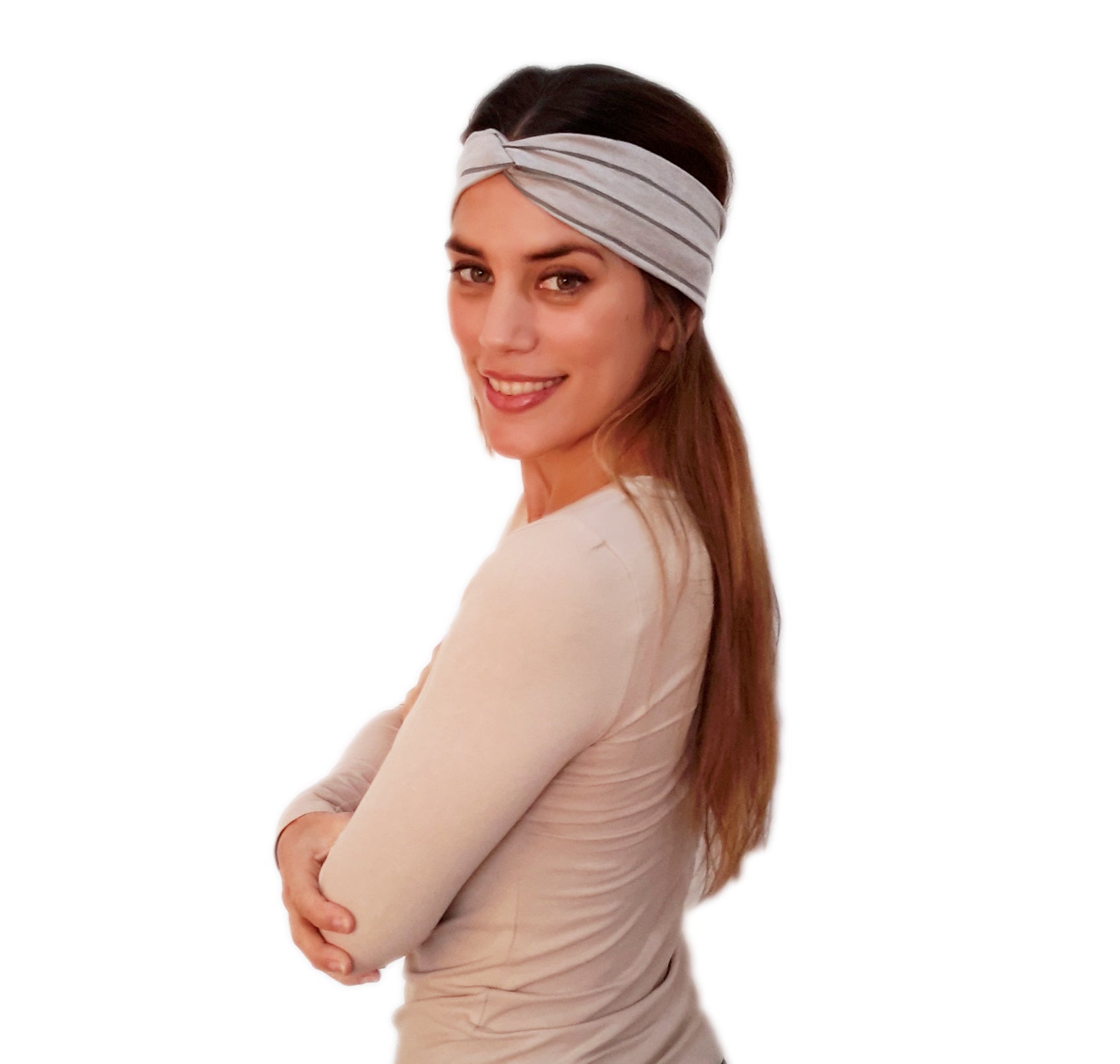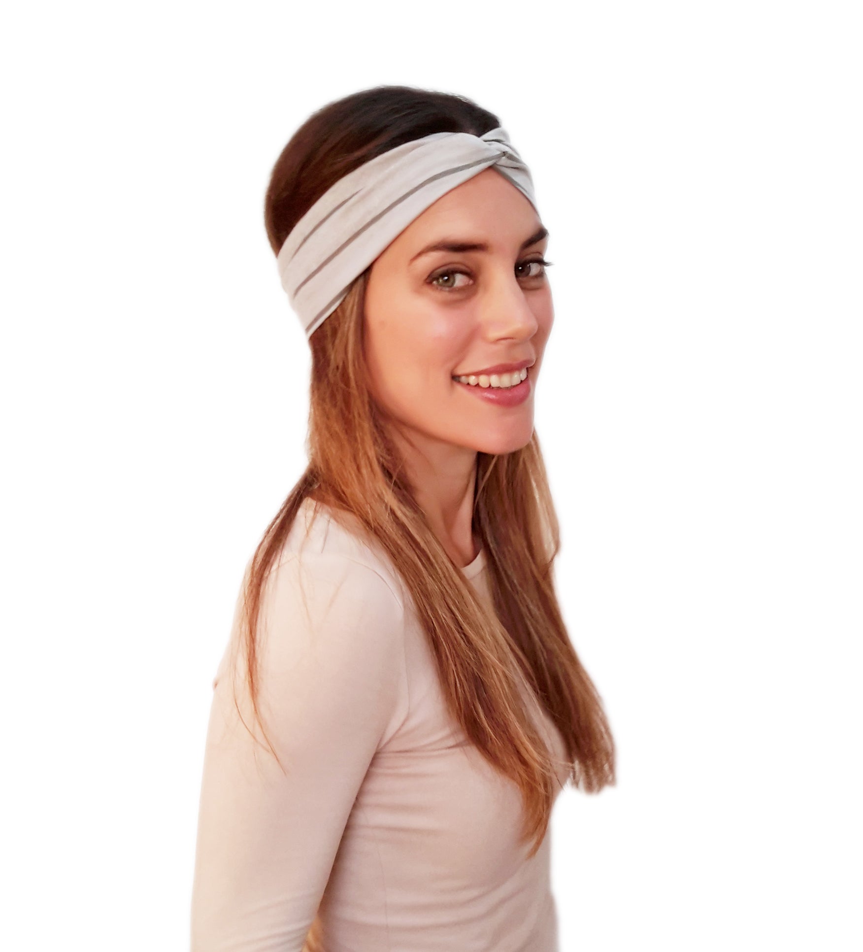 Cinta de Pelo Elástica con Nudo · Rayas Verde Beis (última unidad!)
