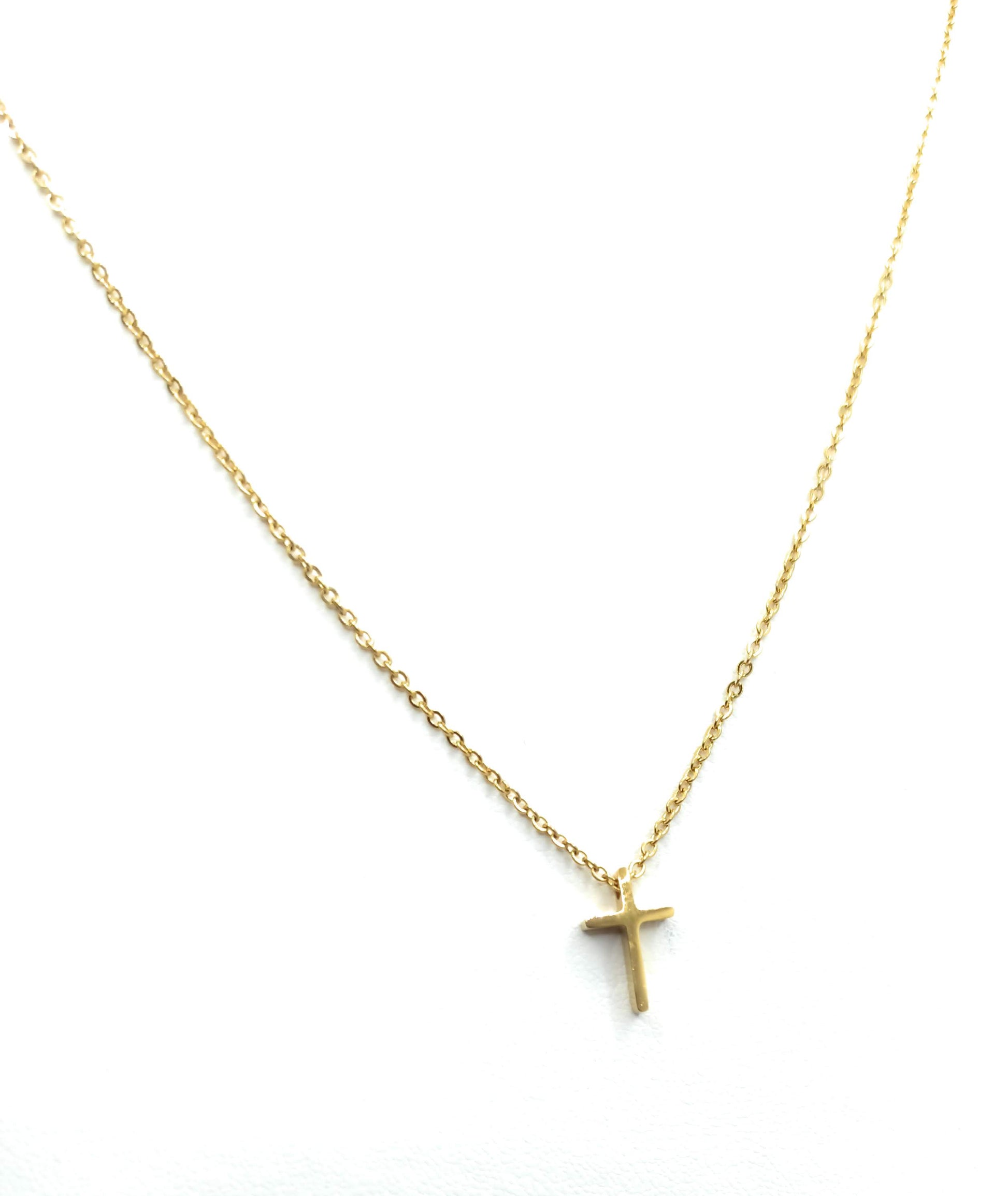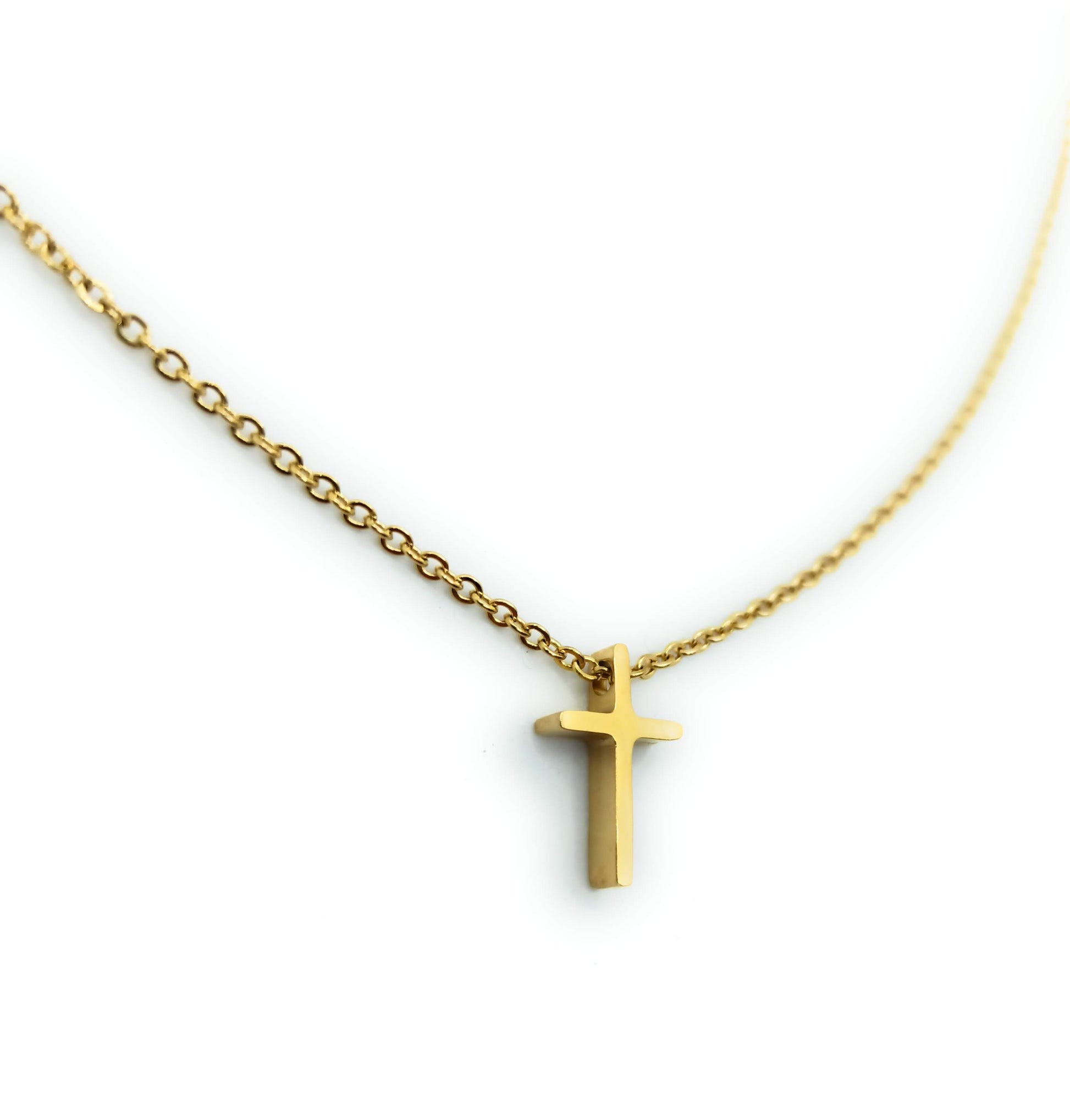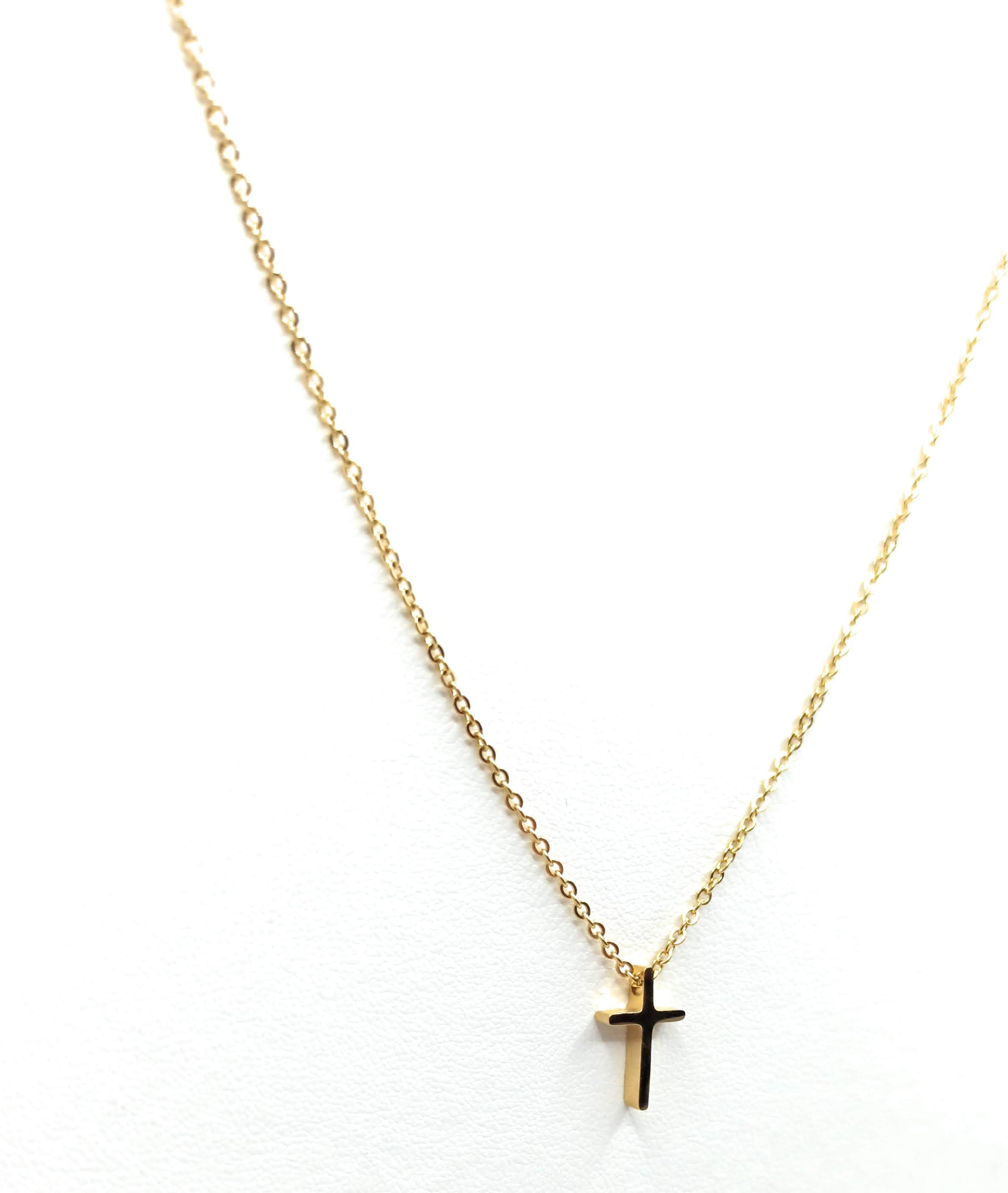 - Cadenita chapado en oro con colgante de cruz en 3D