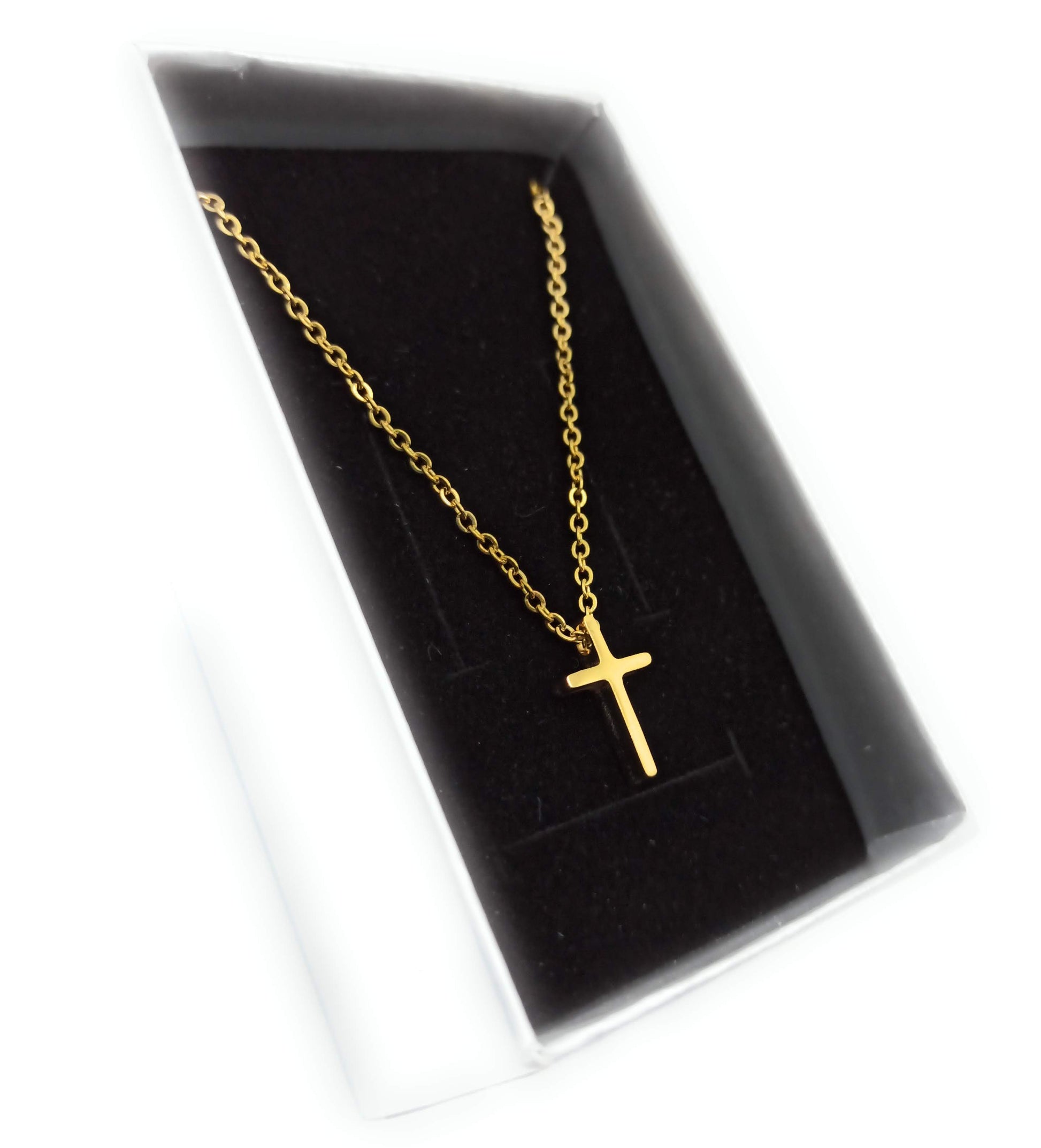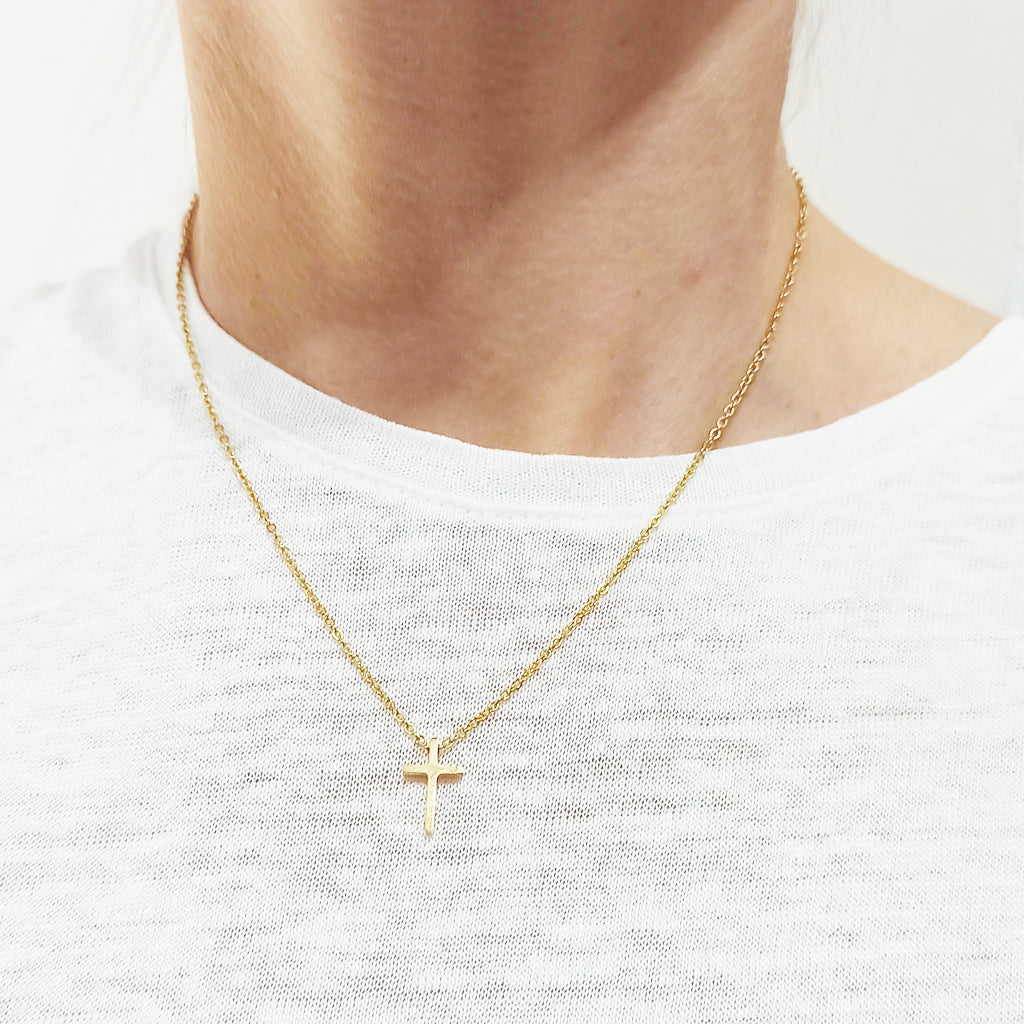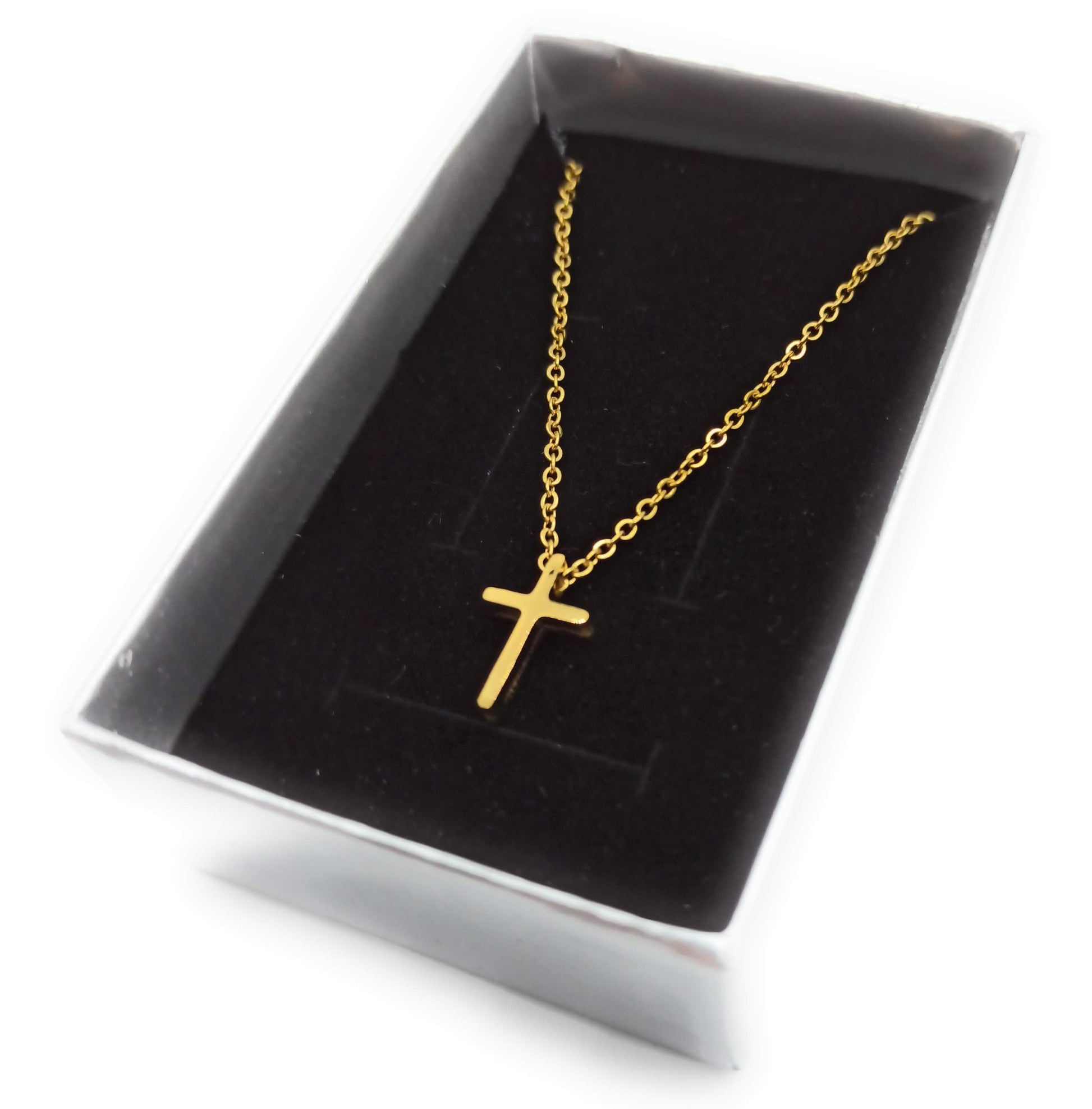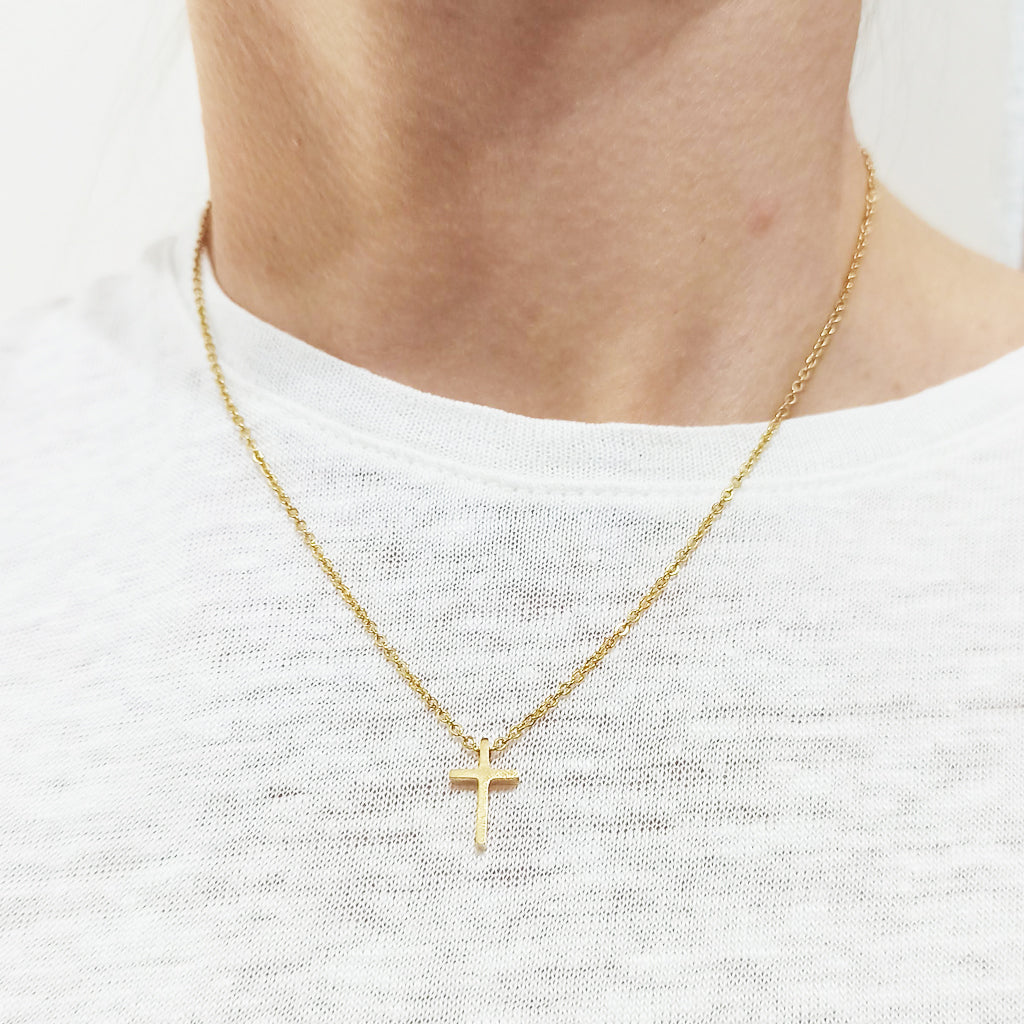 - Cadenita chapado en oro con colgante de cruz en 3D