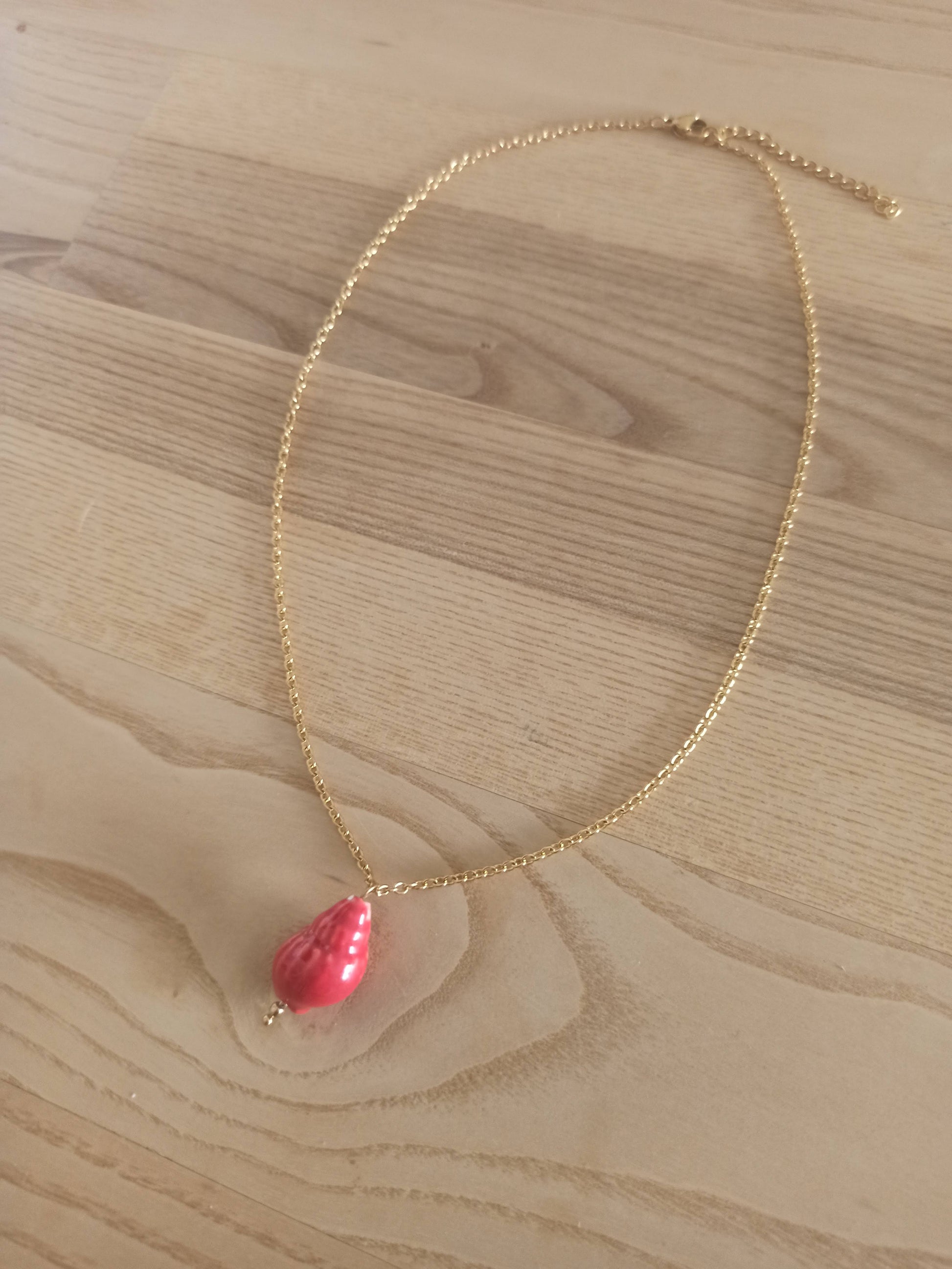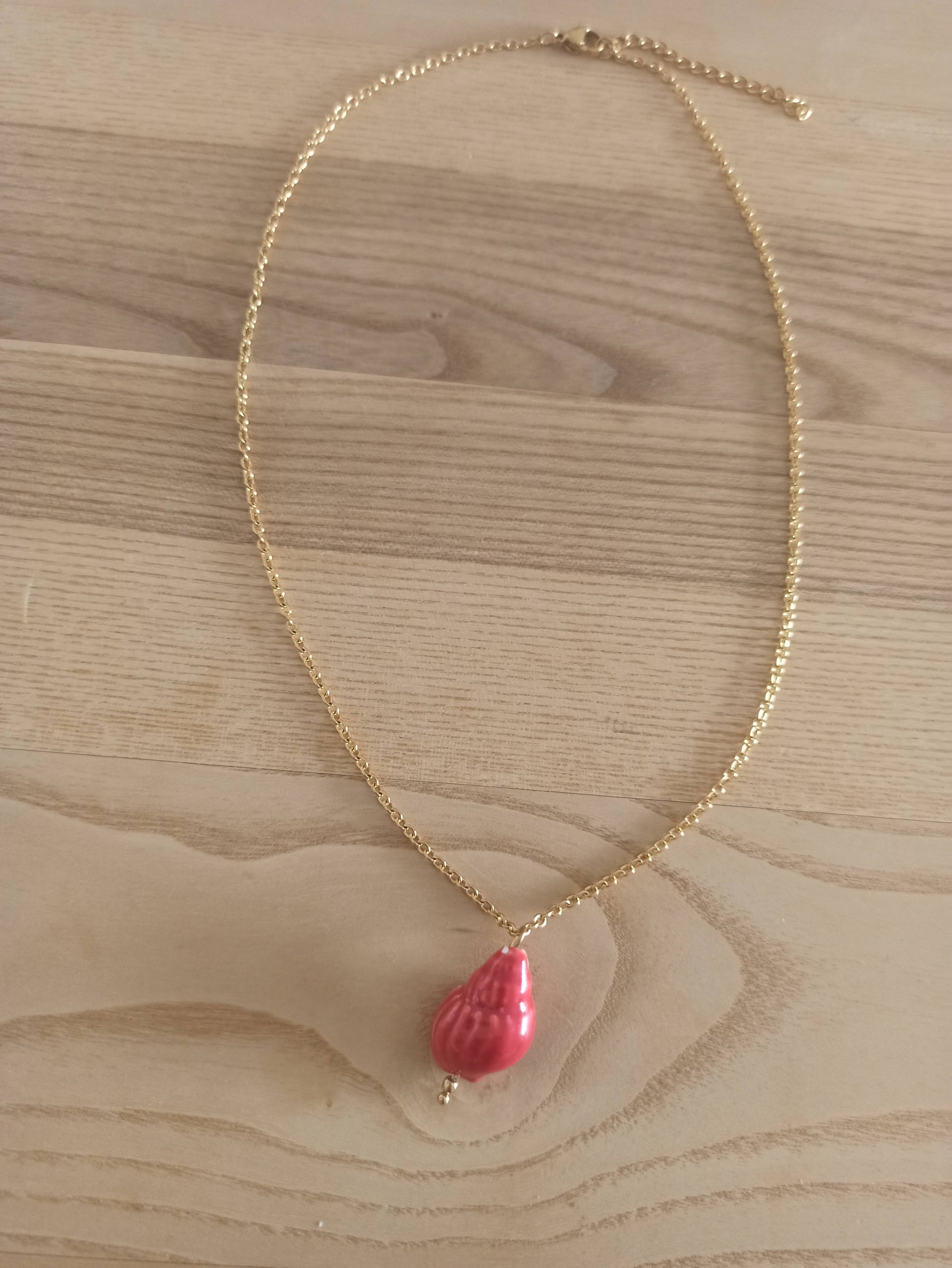 Collar Corto Dorado con Colgante · Concha de Cerámica