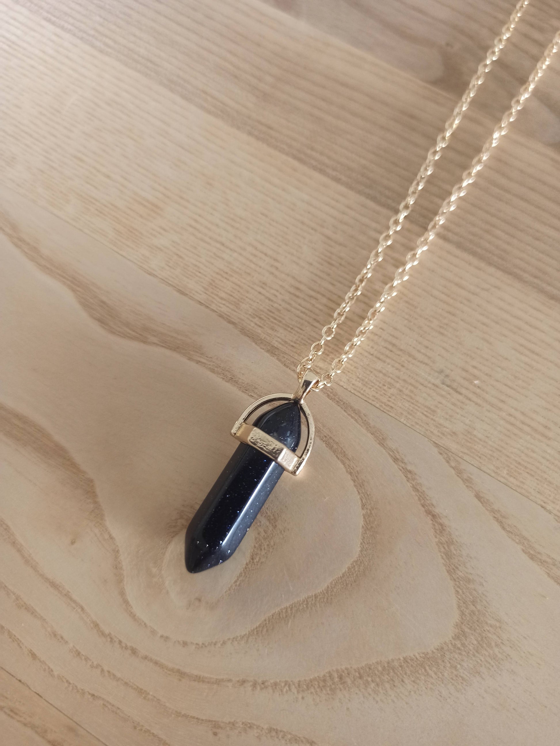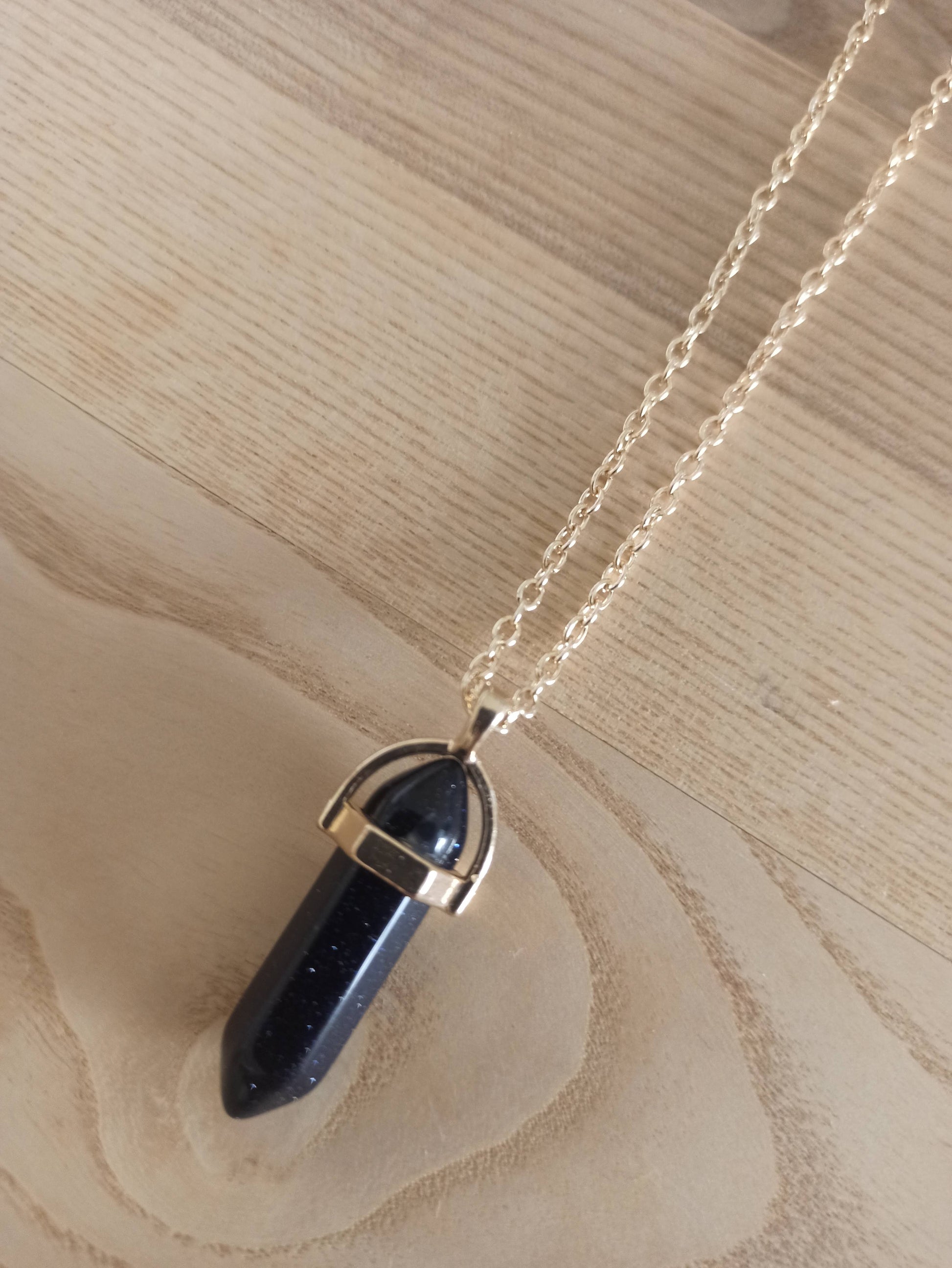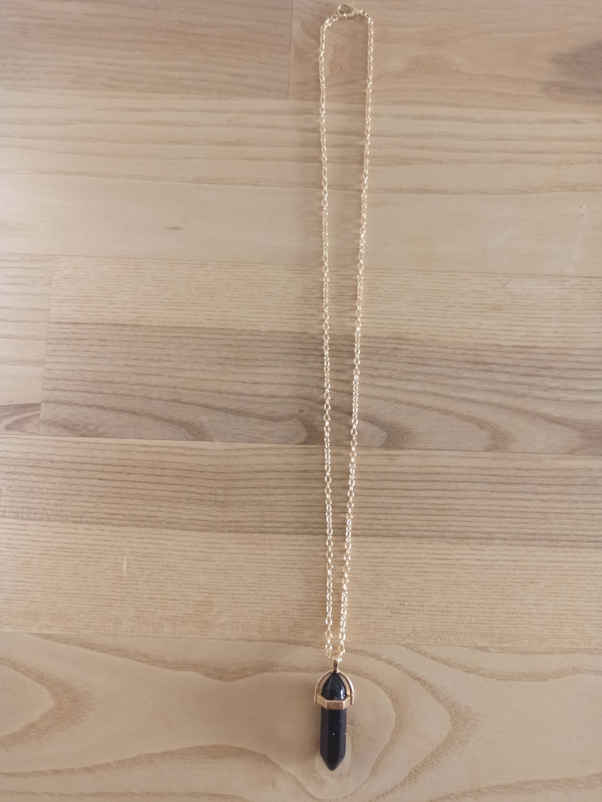 Péndulo Hexagonal de Piedra Semipreciosa Natural con Collar Corto Dorado · Negro Brillo (últimas unidades!)