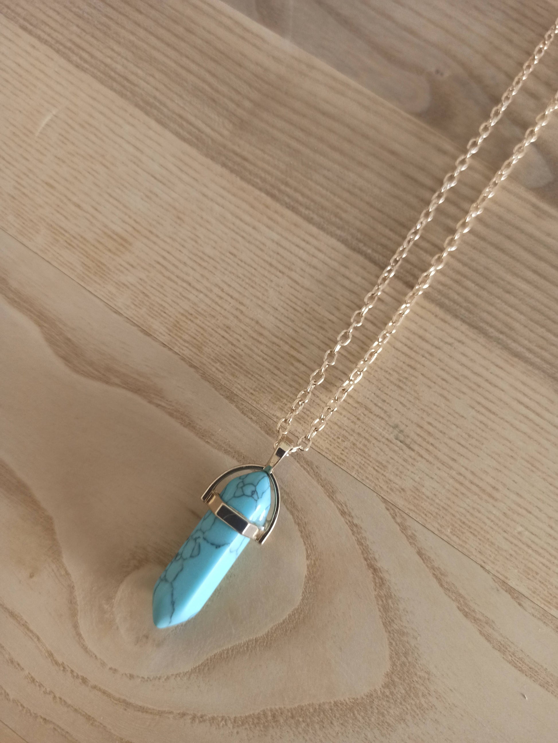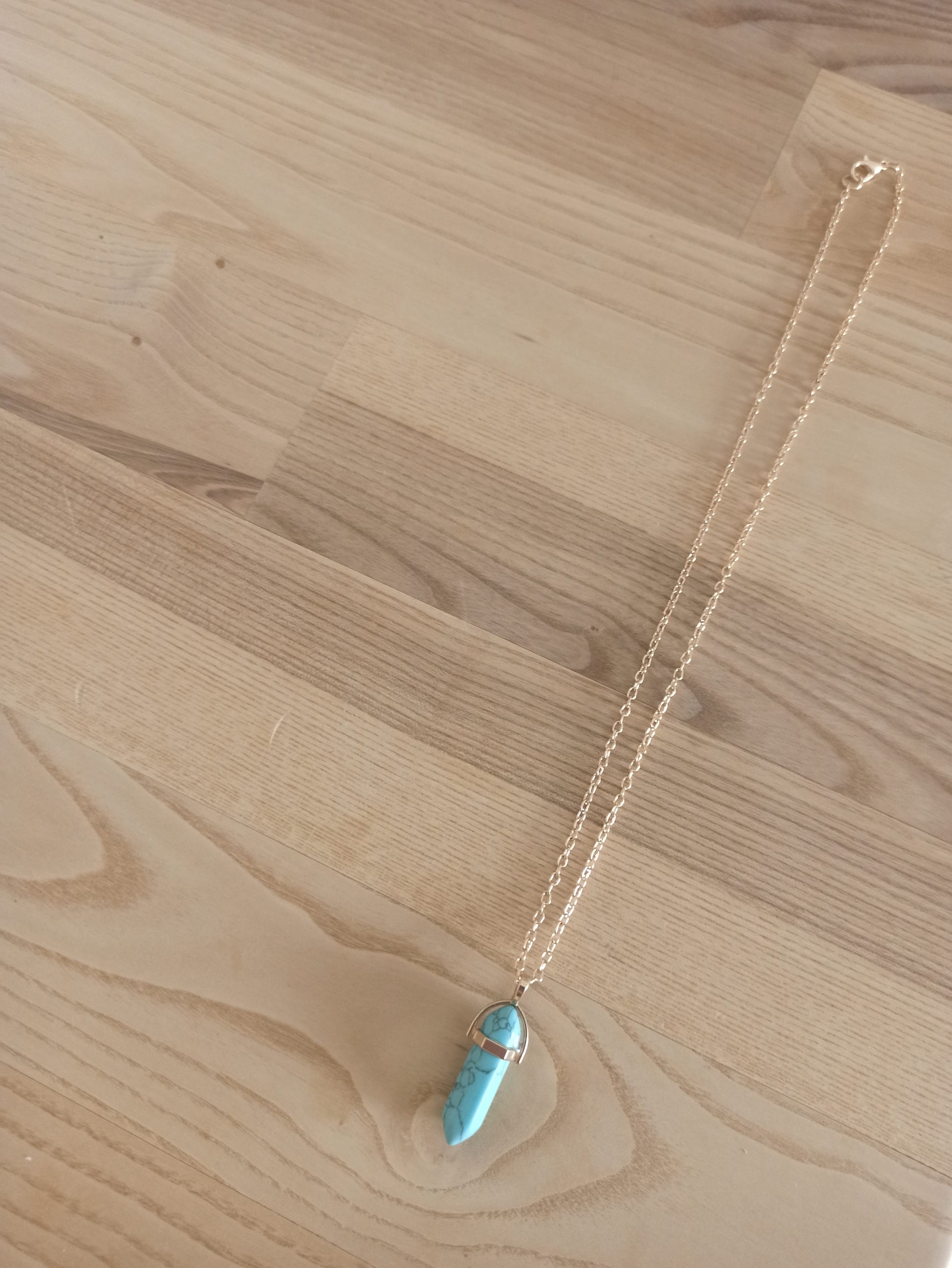 Péndulo Hexagonal de Piedra Semipreciosa Natural con Collar Corto Dorado · Turquesa (últimas unidades!)