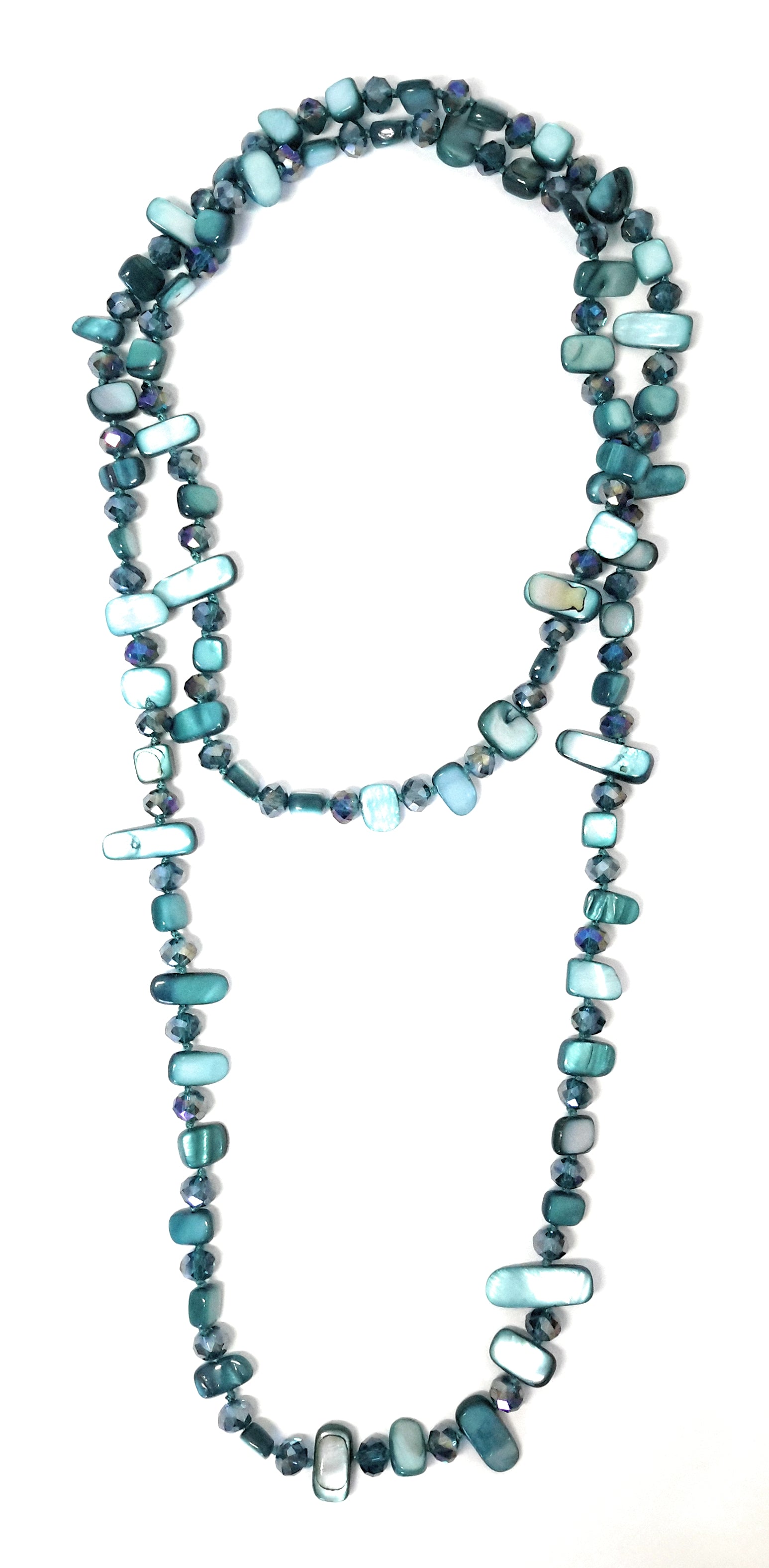 ¿Buscas un accesorio especial y distinguido a buen precio? Este collar largo anudado te va a encantar porque combina piezas de nácar con perlas de cristal en diferentes colores que hace un efecto muy bonito. Llévalo a diario para dar un toque especial a tu vestimenta o de forma elegante con un vestido para eventos, bodas, comuniones, etc.
