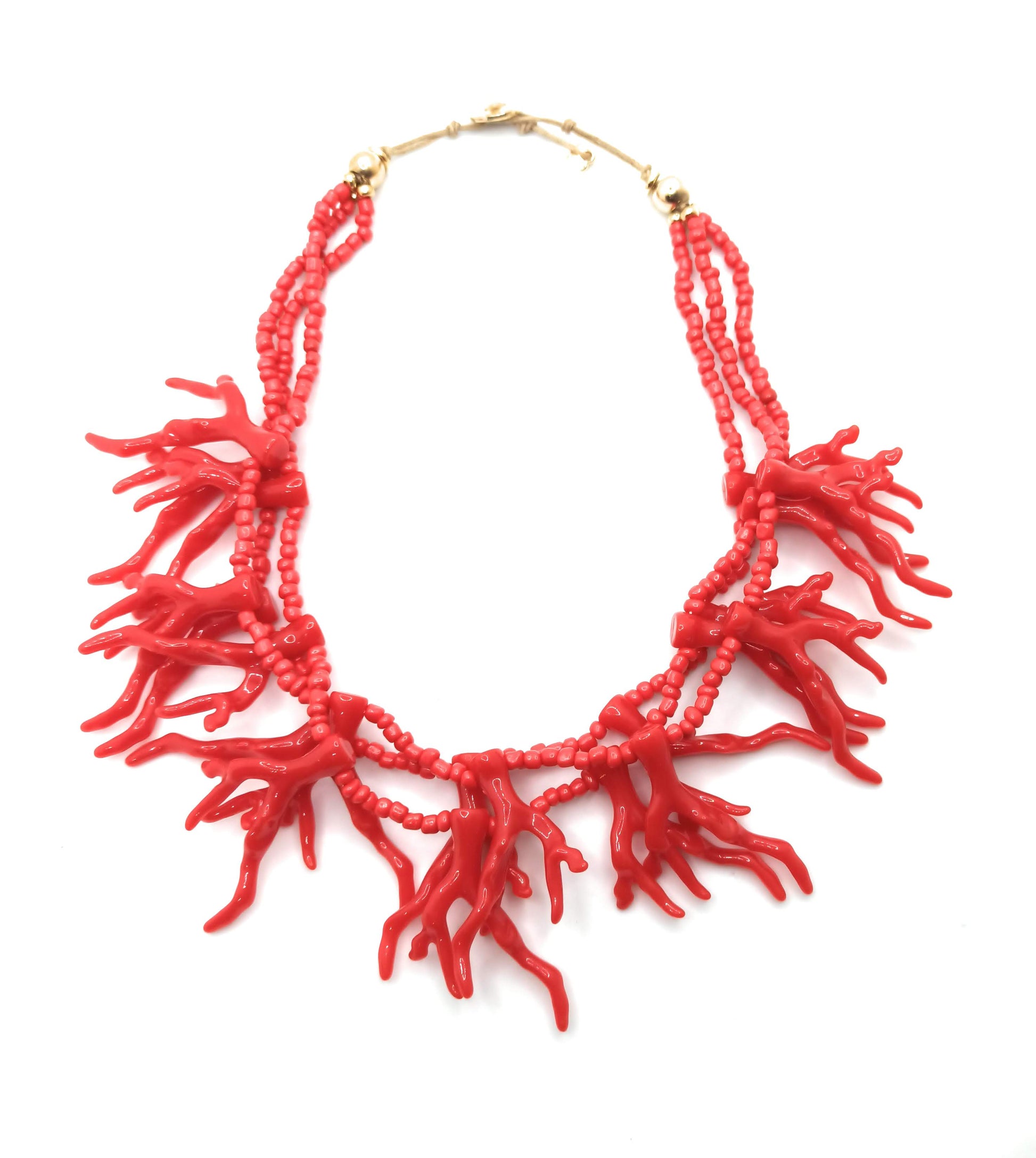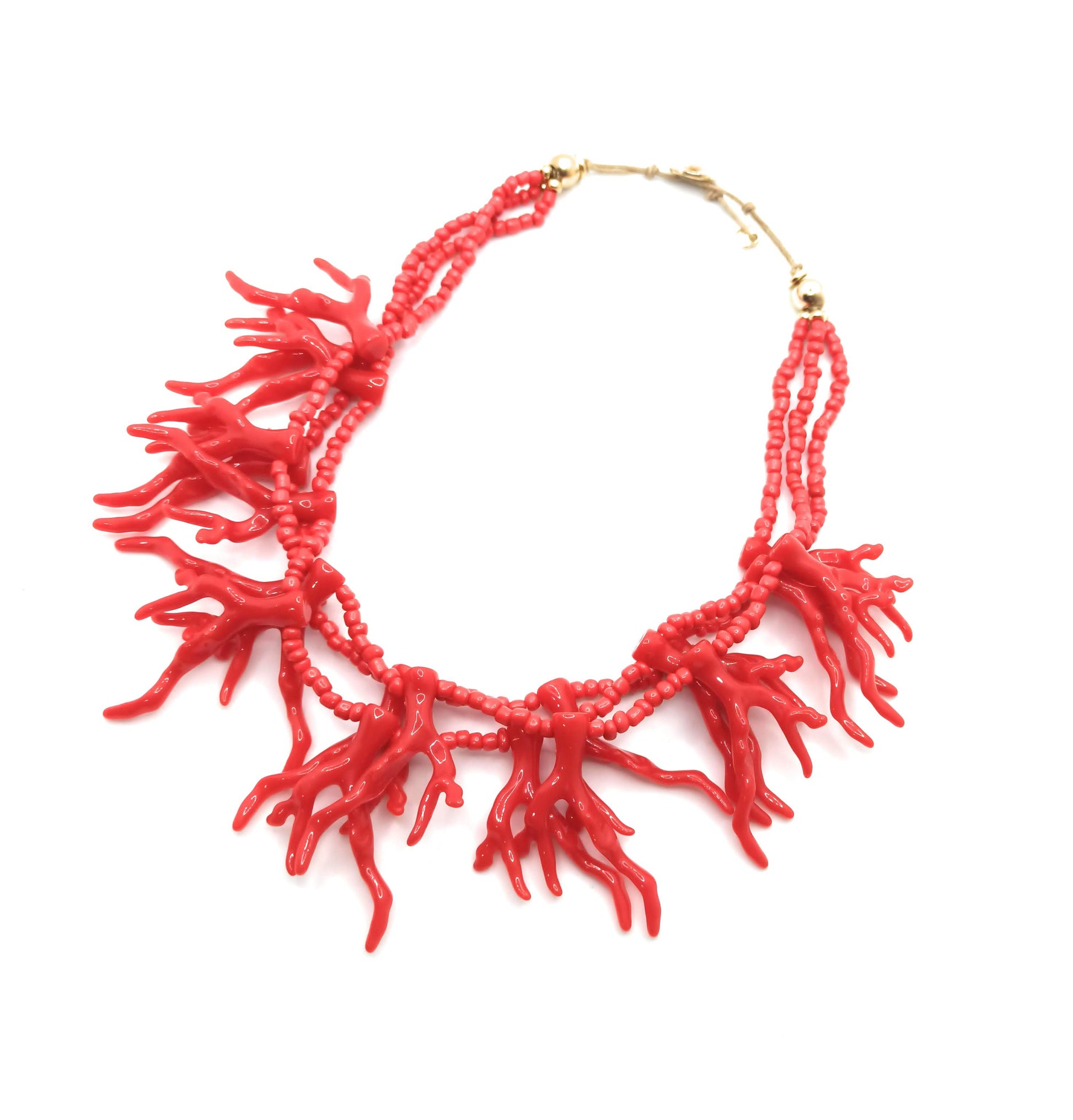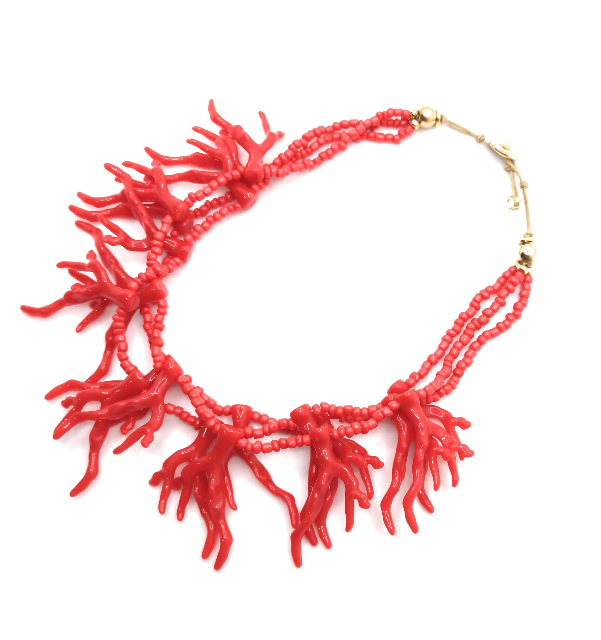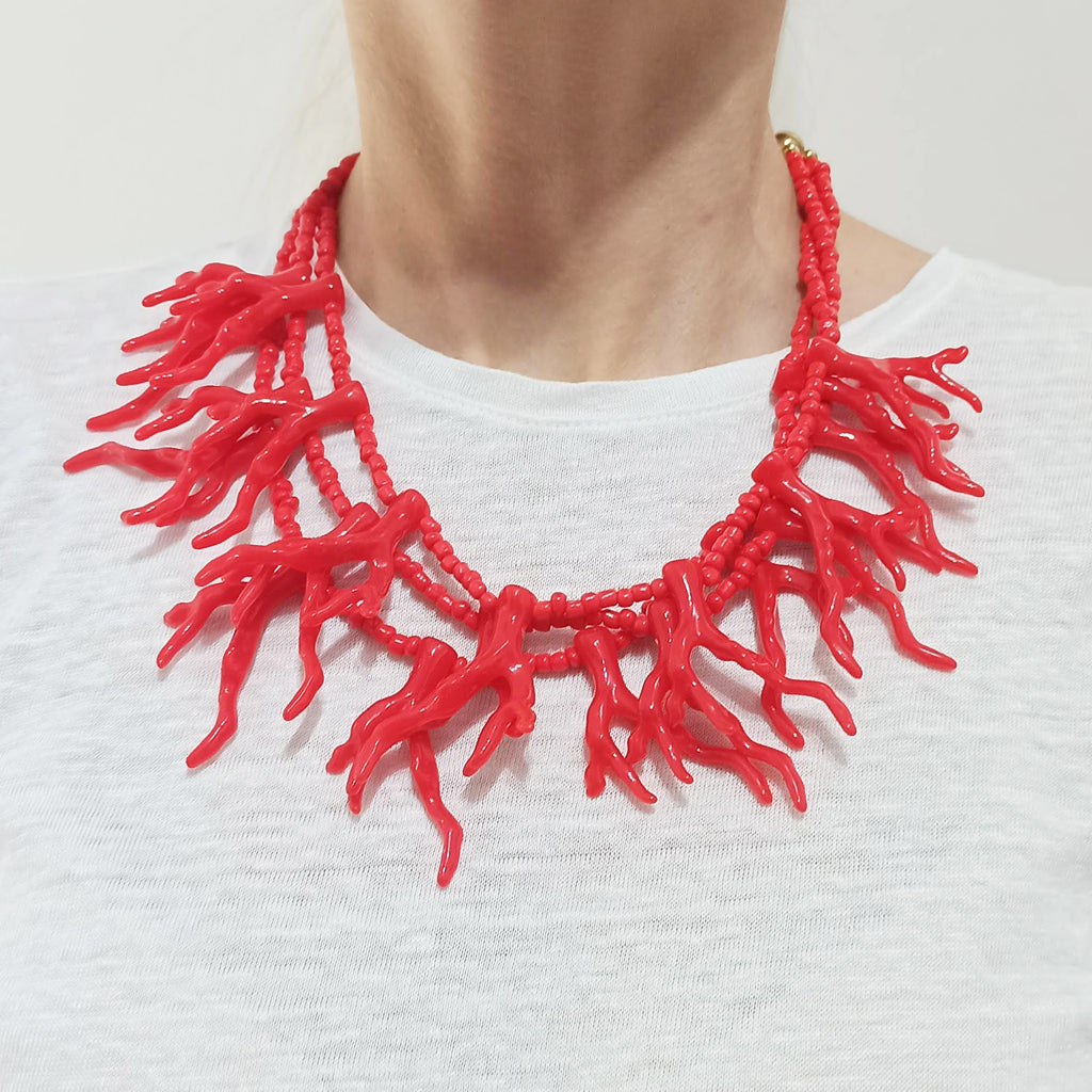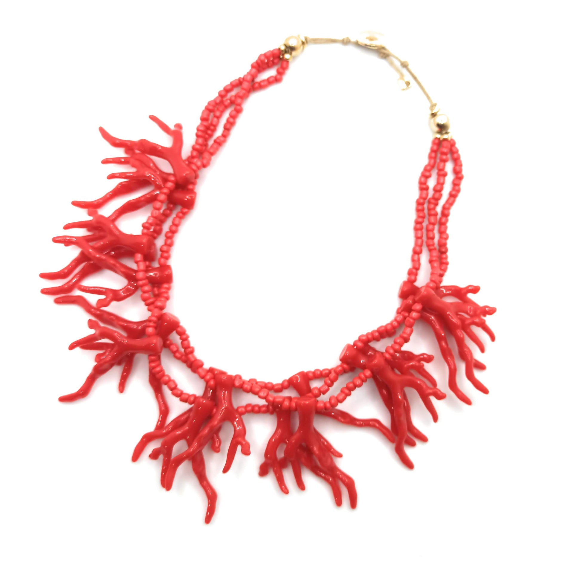 • Collar de Cuentas de Piedras y Corales Colgantes de Imitación