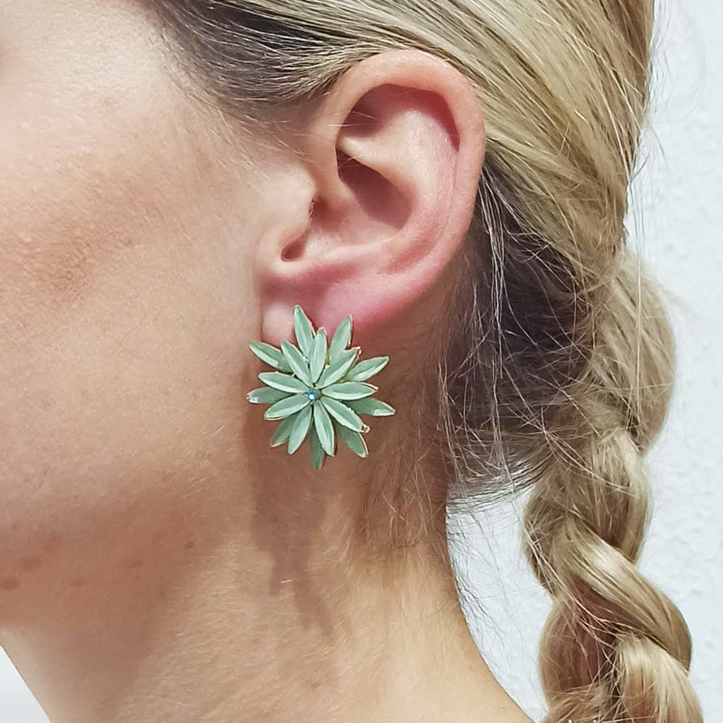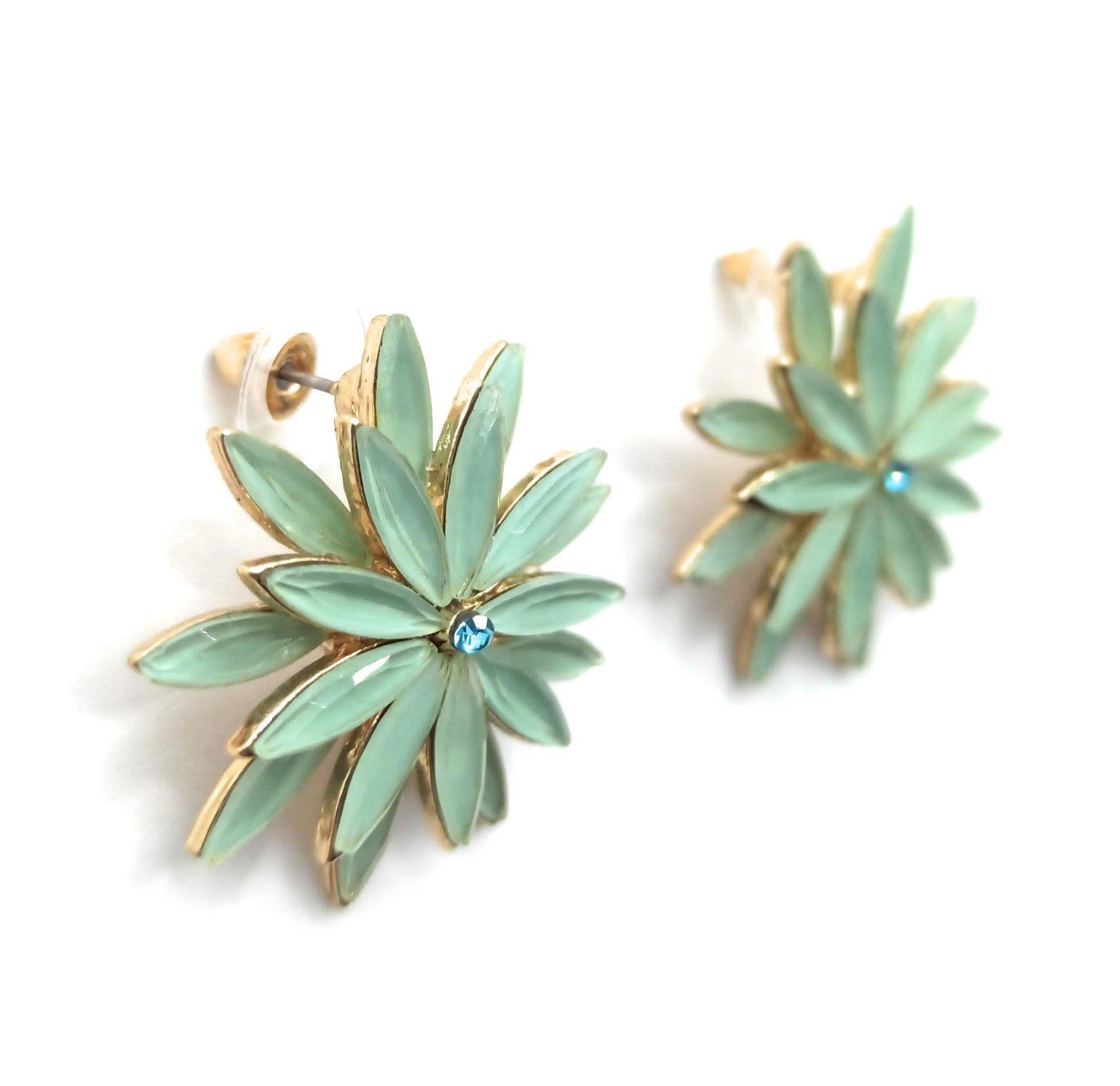 Pendientes Cristales Margarita · Verde Agua, Oro