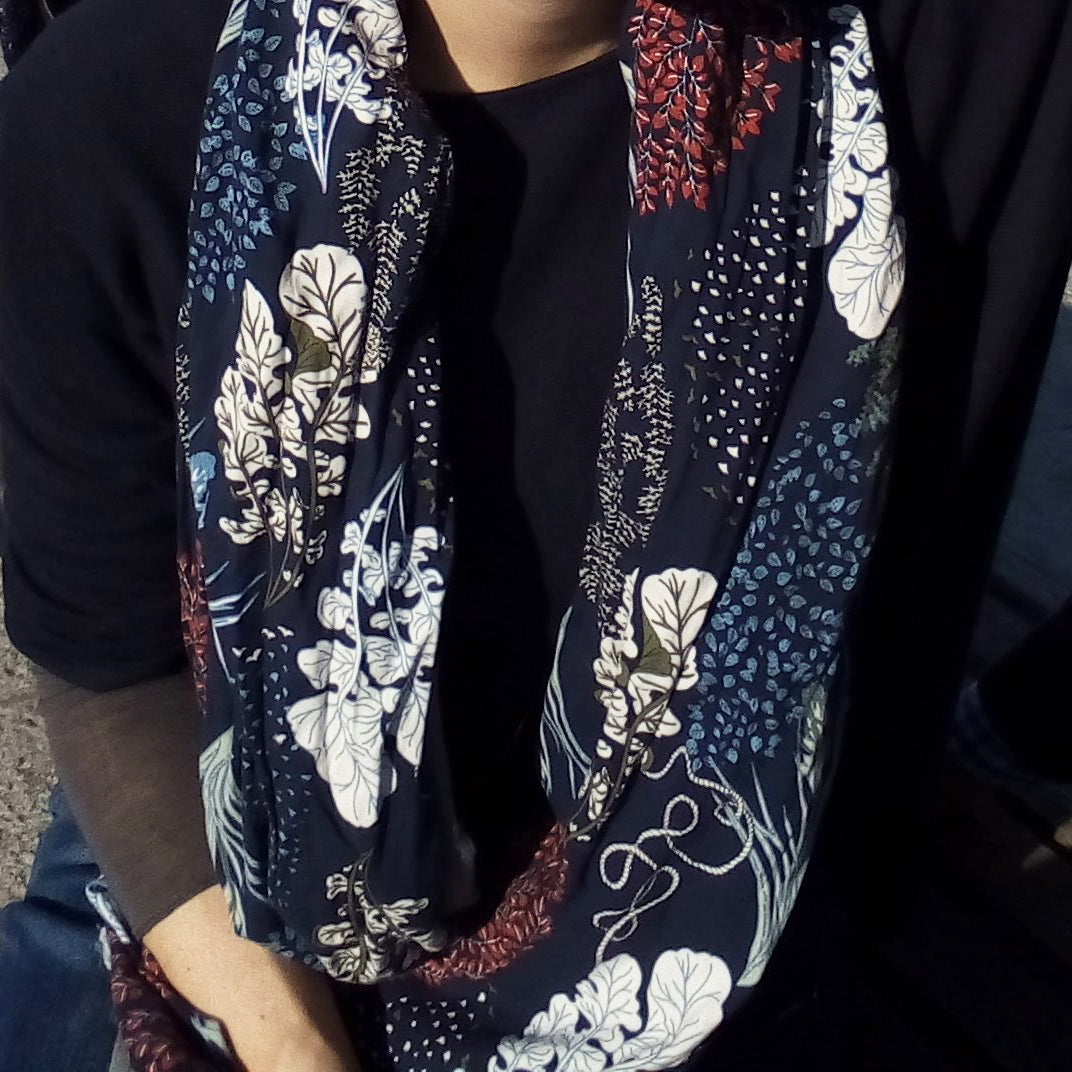 Bufanda tipo cuello para mujer, suave, cálida y sin lana, ideal para piel sensible. Diseño reversible con estampados modernos, hecha en España. Accesorio de invierno imprescindible y regalo perfecto para mujer.
