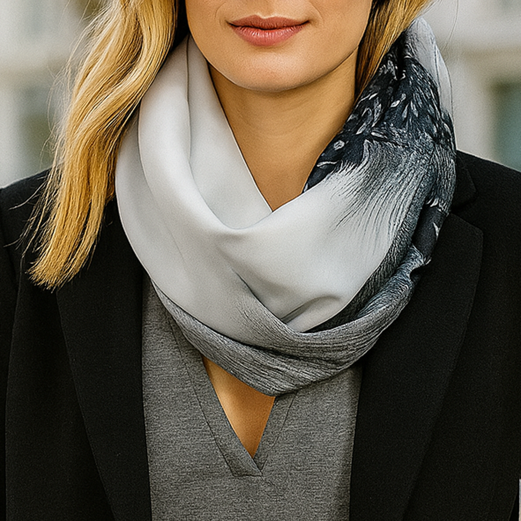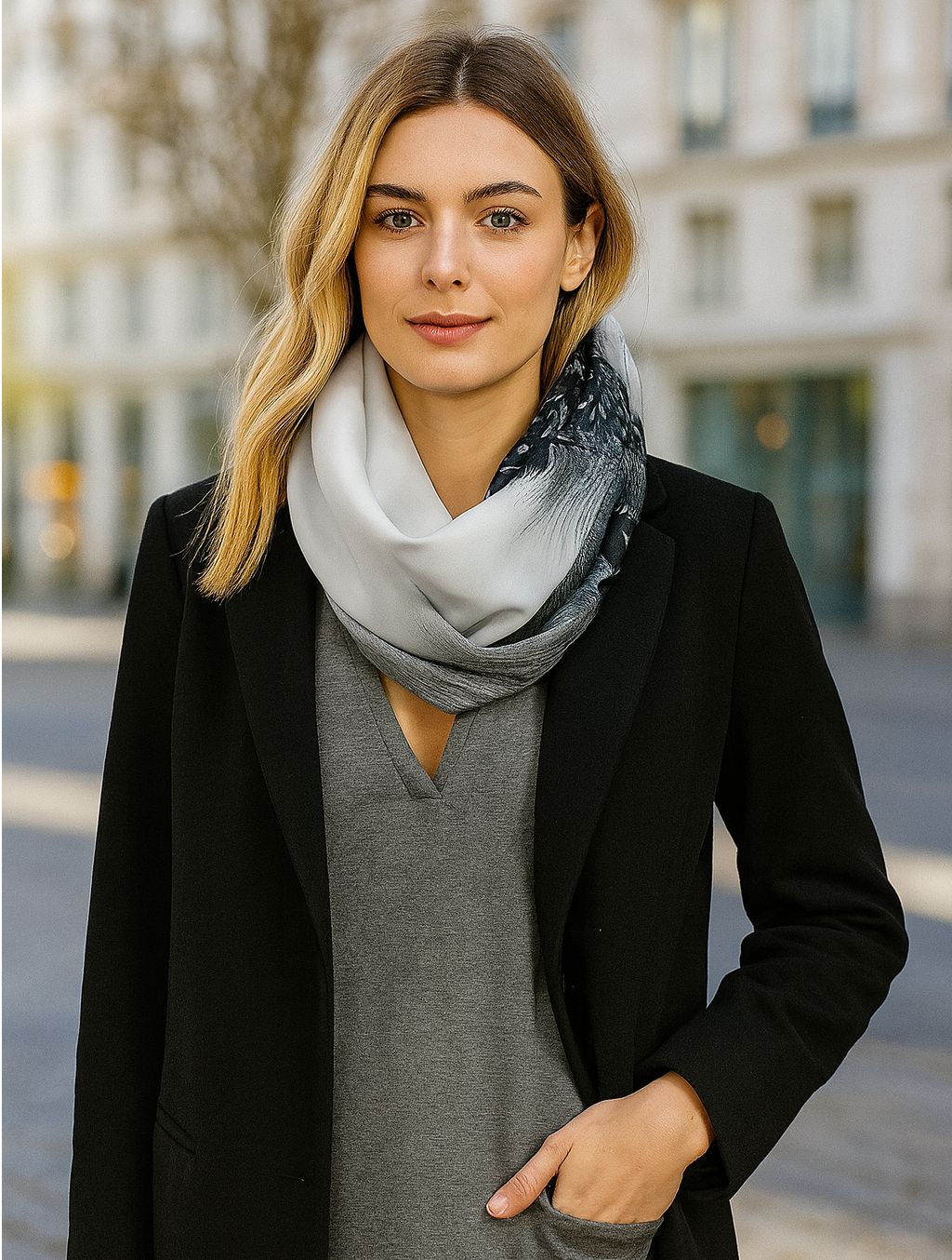 Bufanda Infinita Cuello Mujer · Flores Blanco Negro