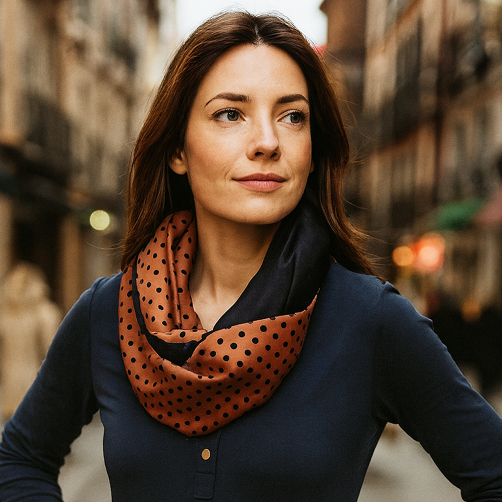 Bufanda Infinita Cuello Reversible Mujer · Lunares/Azul