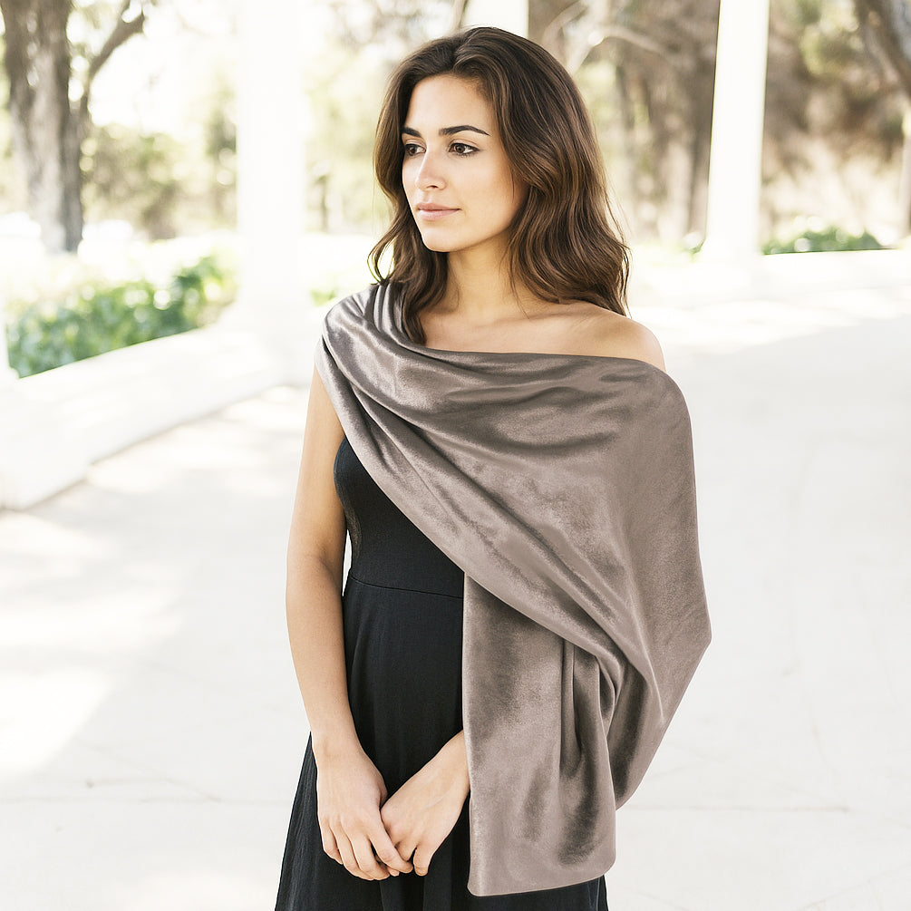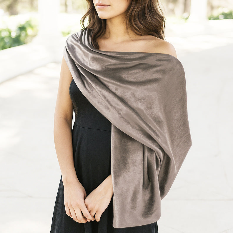 Envuelve tus hombros con la sofisticación de esta estola de terciopelo para mujer, un accesorio imprescindible para elevar cualquier look de fiesta. Confeccionada en terciopelo de primera calidad, su tacto suave, brillo sutil y cuerpo elegante la convierten en una pieza única que aporta estilo, calidez y distinción.