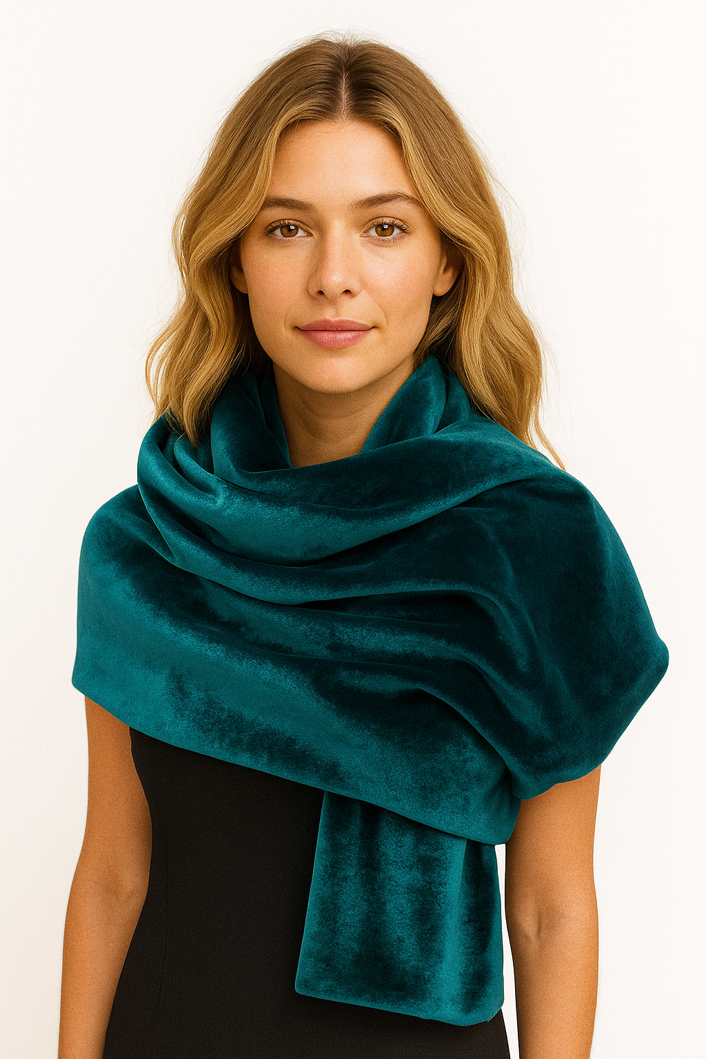 Estola de Terciopelo Mujer – Elegante y Hecha a Mano en Sevilla · Verde Esmeralda (50x150cm)