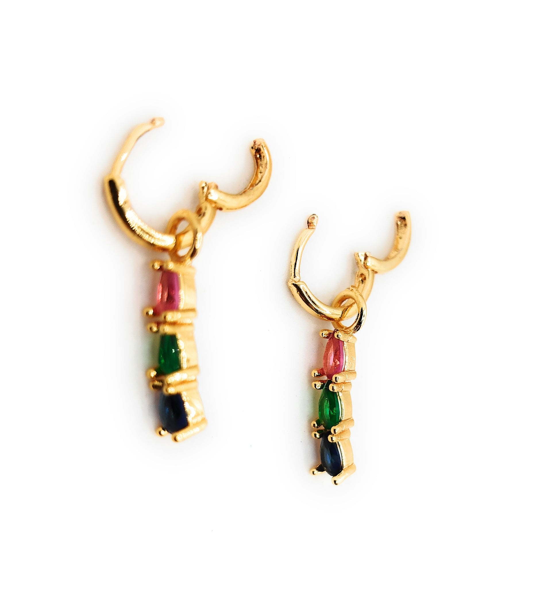Son unos pendientes muy especiales que aportan mucho estilo gracias a los Cristales Facetados incrustados en el colgante triple. Son colores vivos y muy favorecedores gracias a su brillo. A la vez son muy ponibles al ser bisutería fina de estilo minimalista y quedan preciosos puestos. Se pueden llevar perfectamente a diario o en ocasiones especiales.