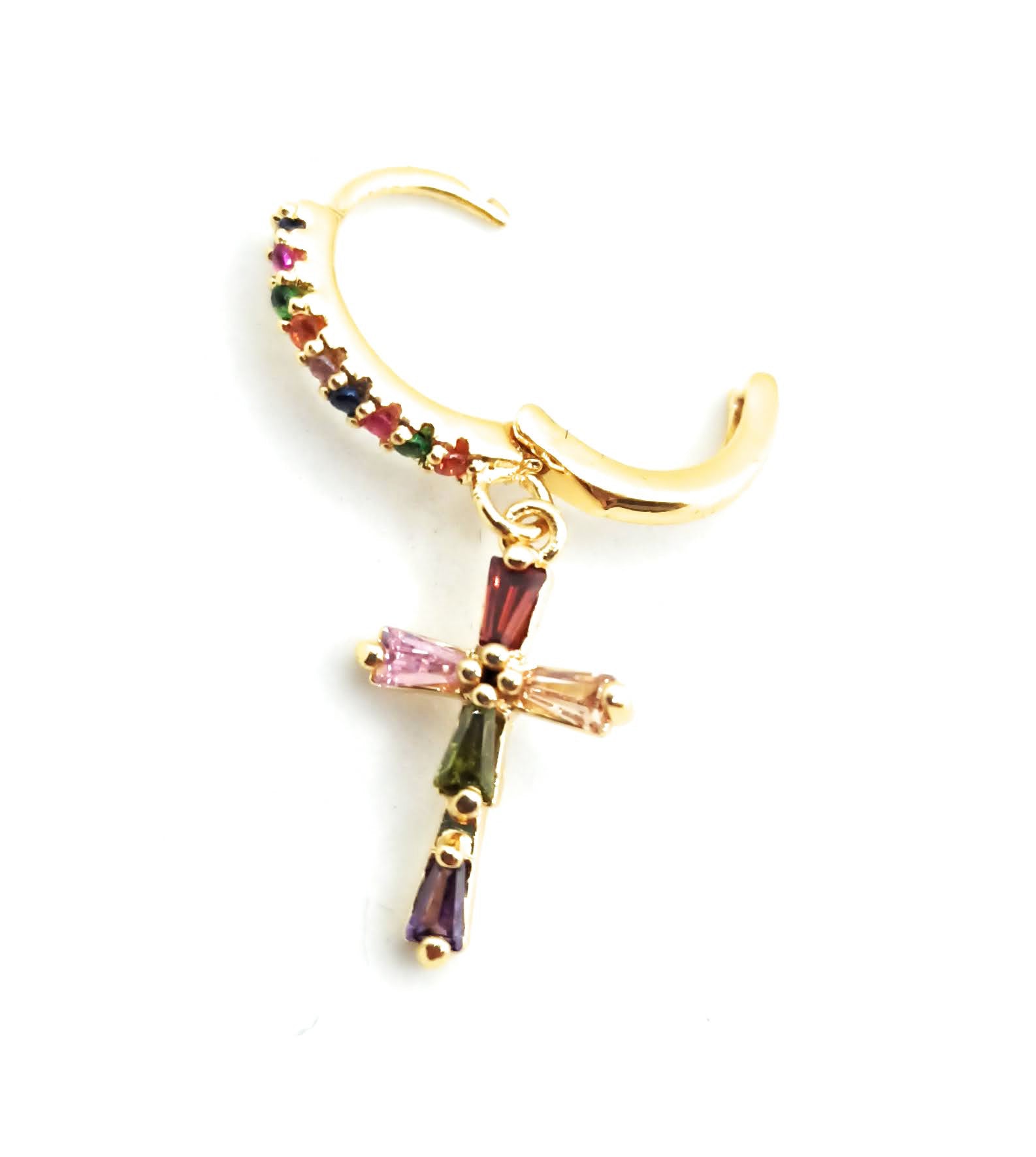 Pendientes con Colgantes · Aro Cruz Multicolor