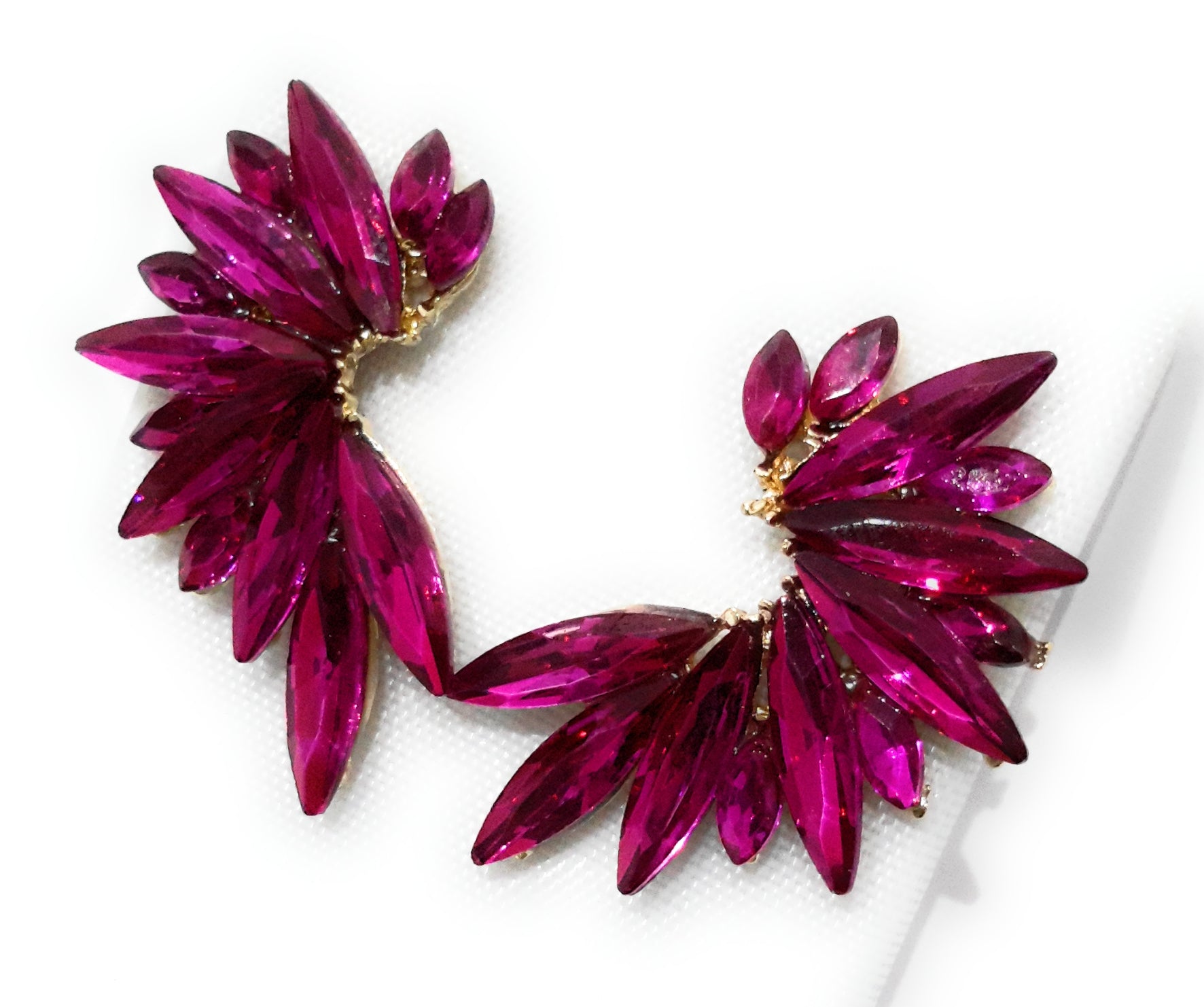 Pendientes Cristales Brillantes · Fucsia, Oro
