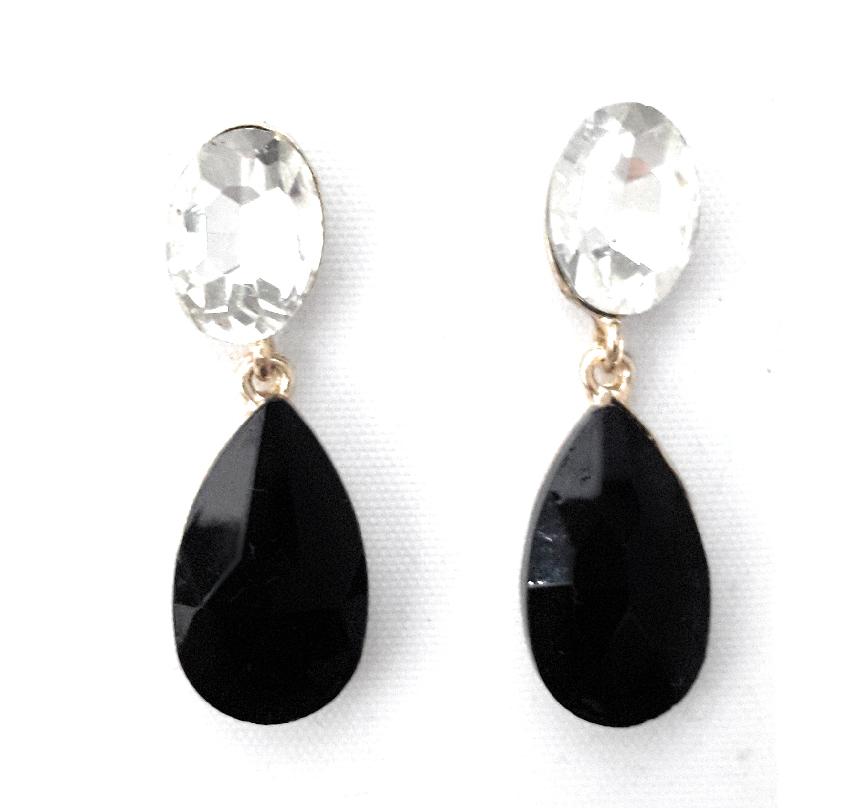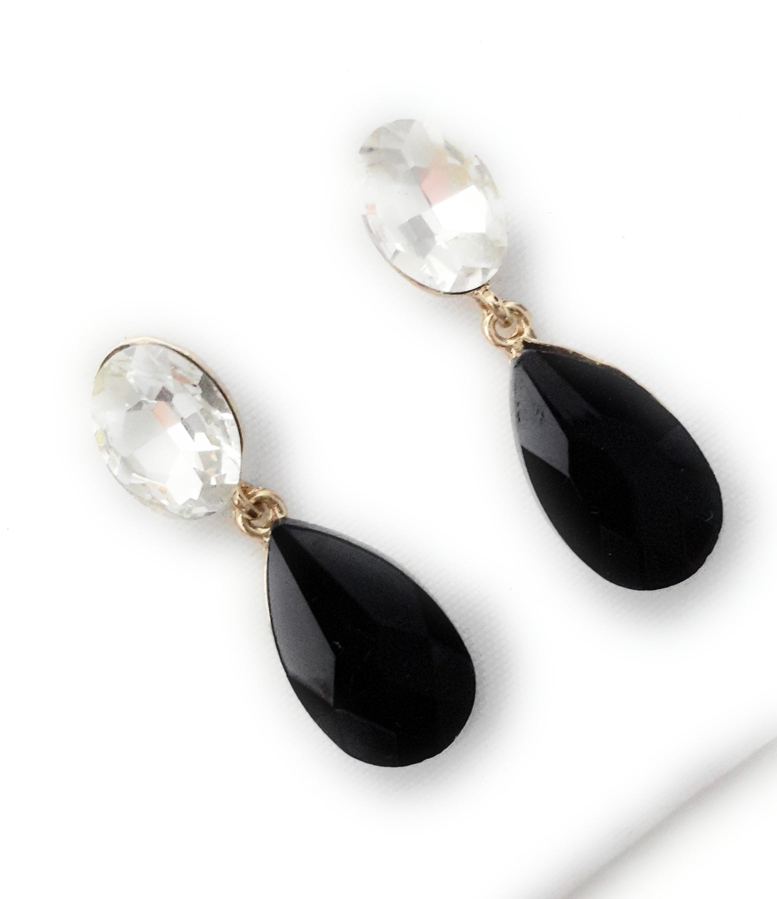 Pendientes Cristales Brillantes Lágrima · Blanco Negro