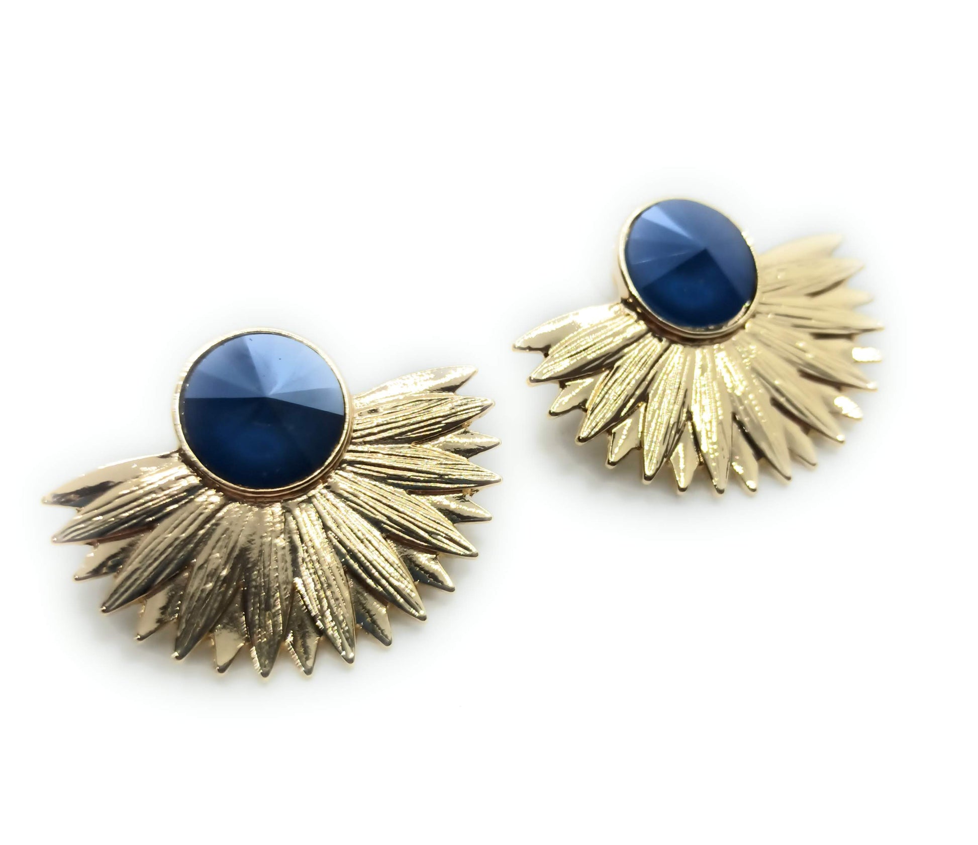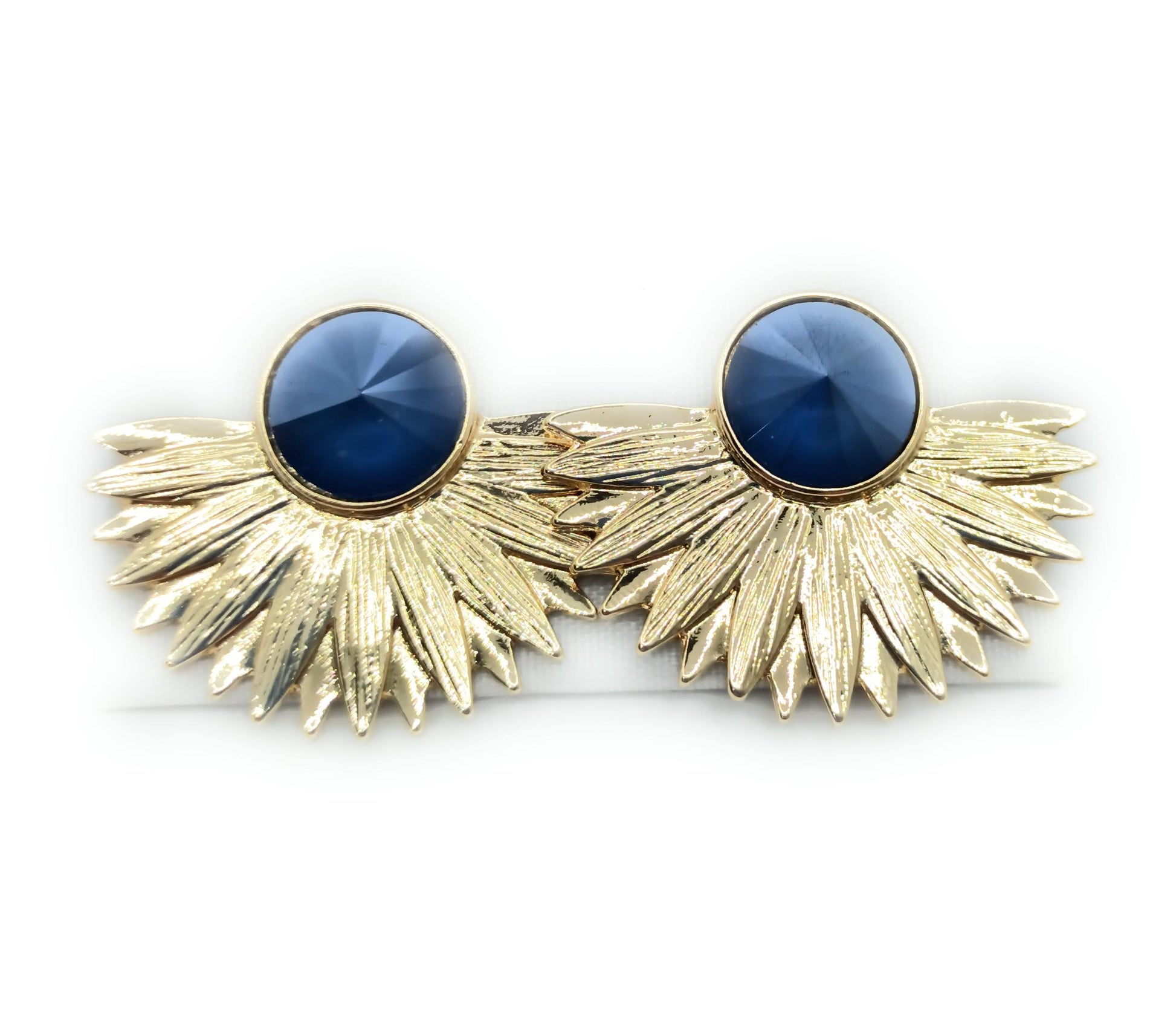 Pendientes Dorados con Cristal · Oro Sol Azul Redondo