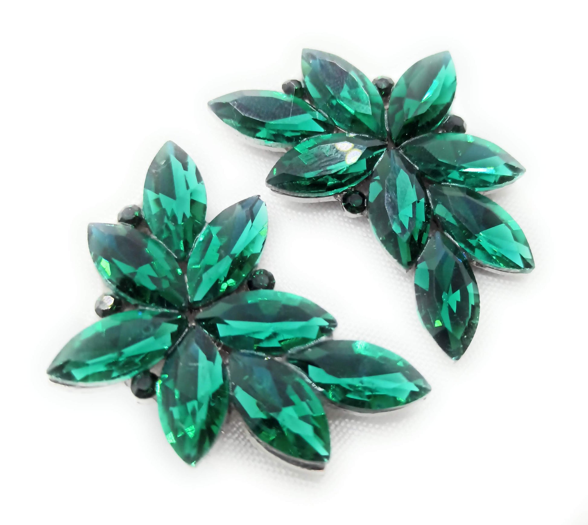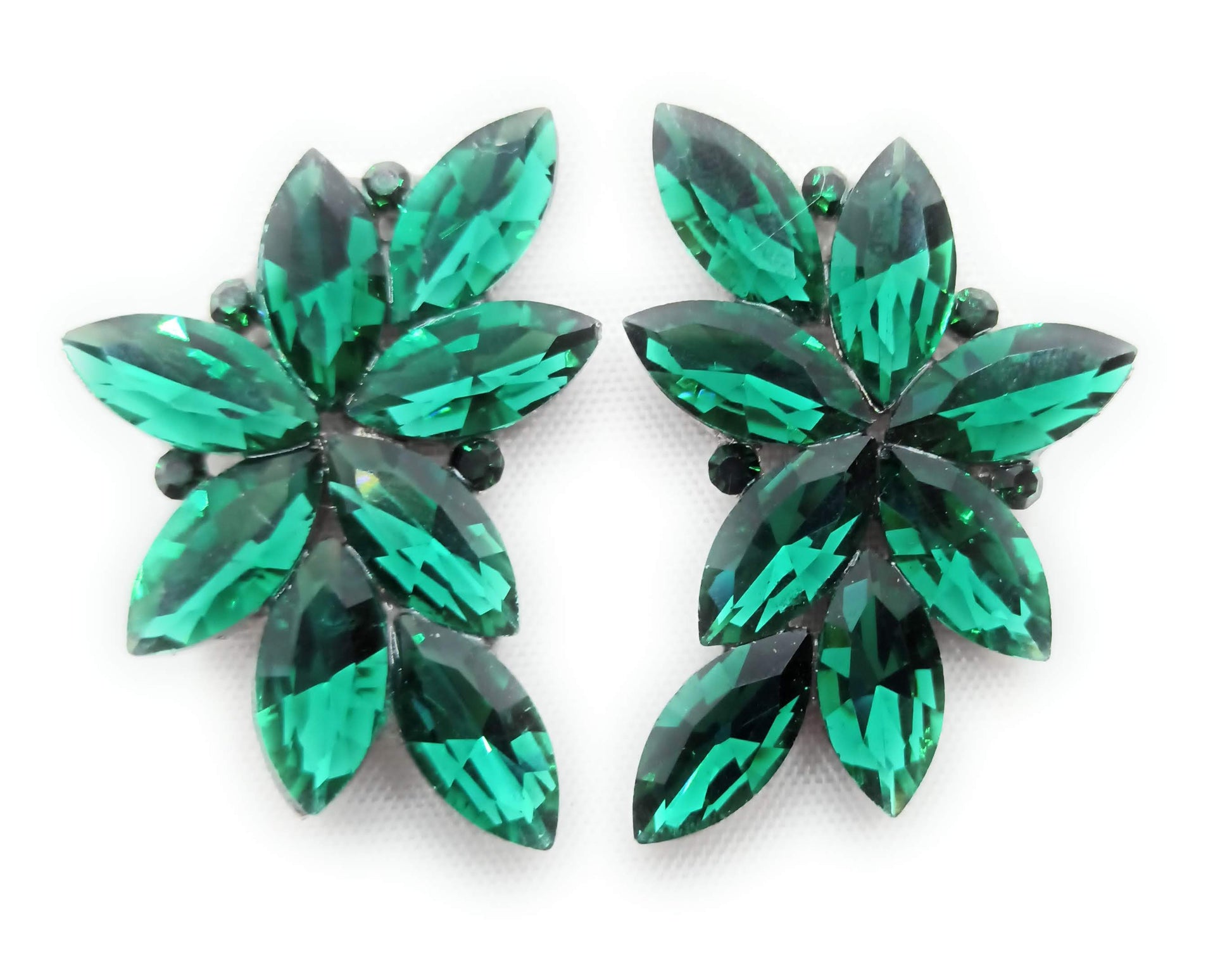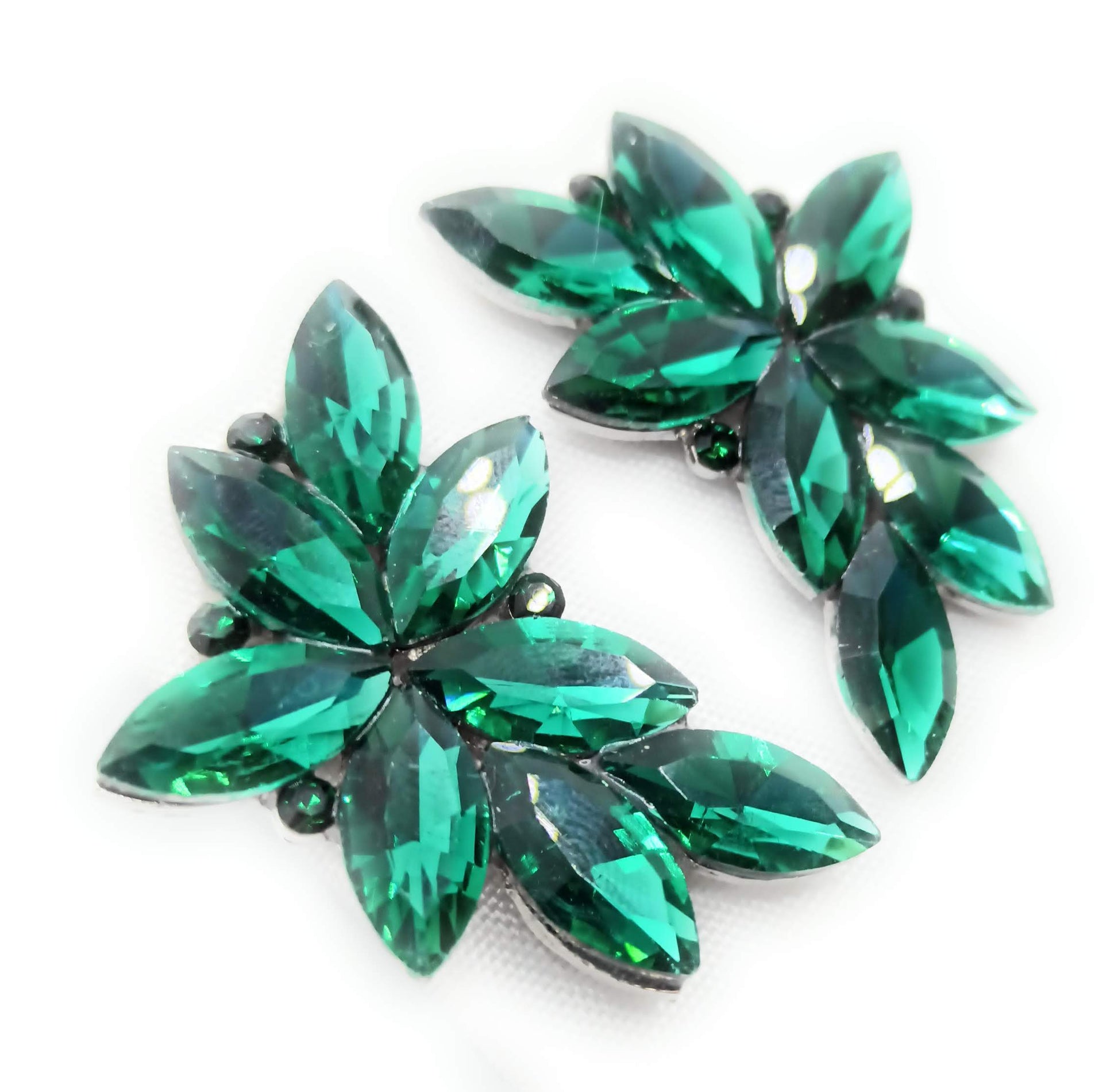 Pendientes Espectaculares Florales · Cristales Verde Esmeralda, Plata