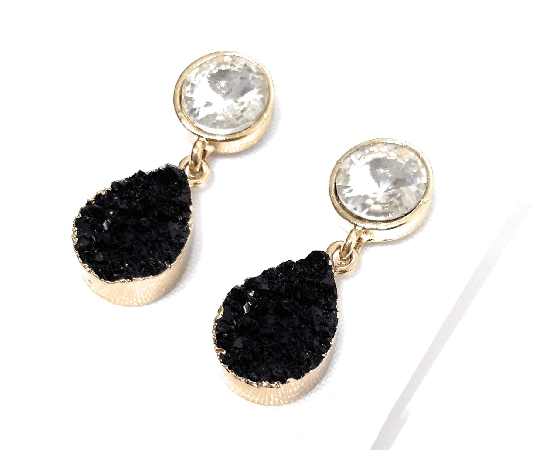 Pendientes Cristal Facetado · Blanco Negro