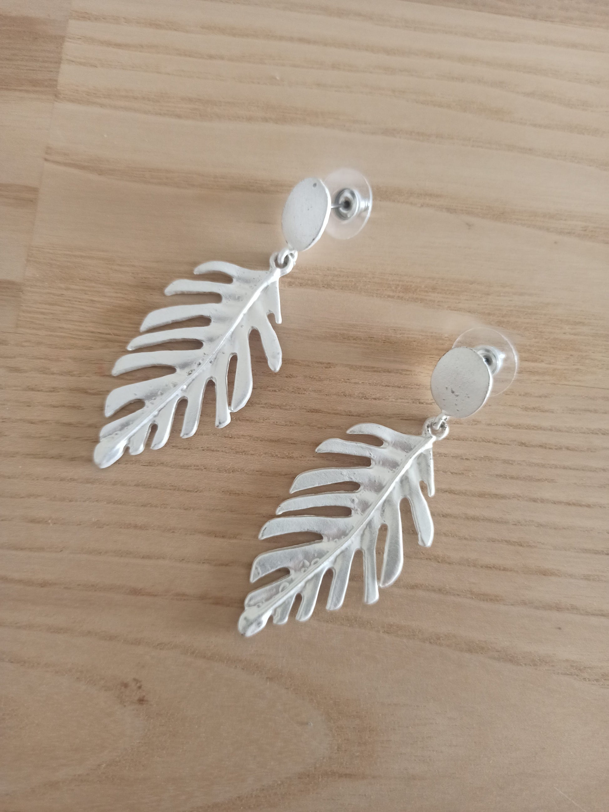 Pendientes Largos Plateado Mate · Hoja (últimas unidades!)