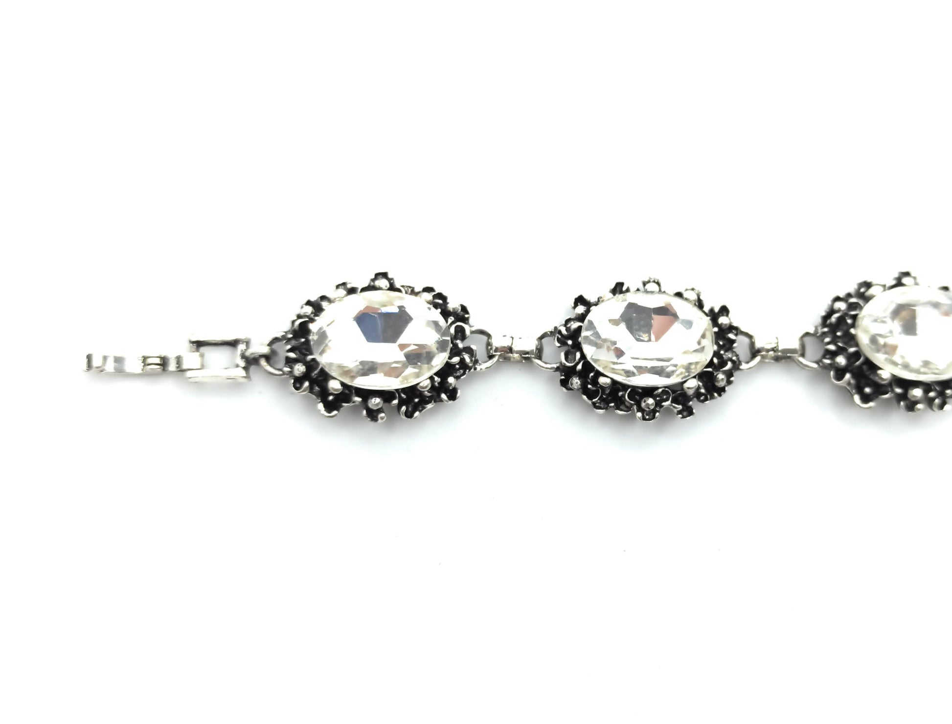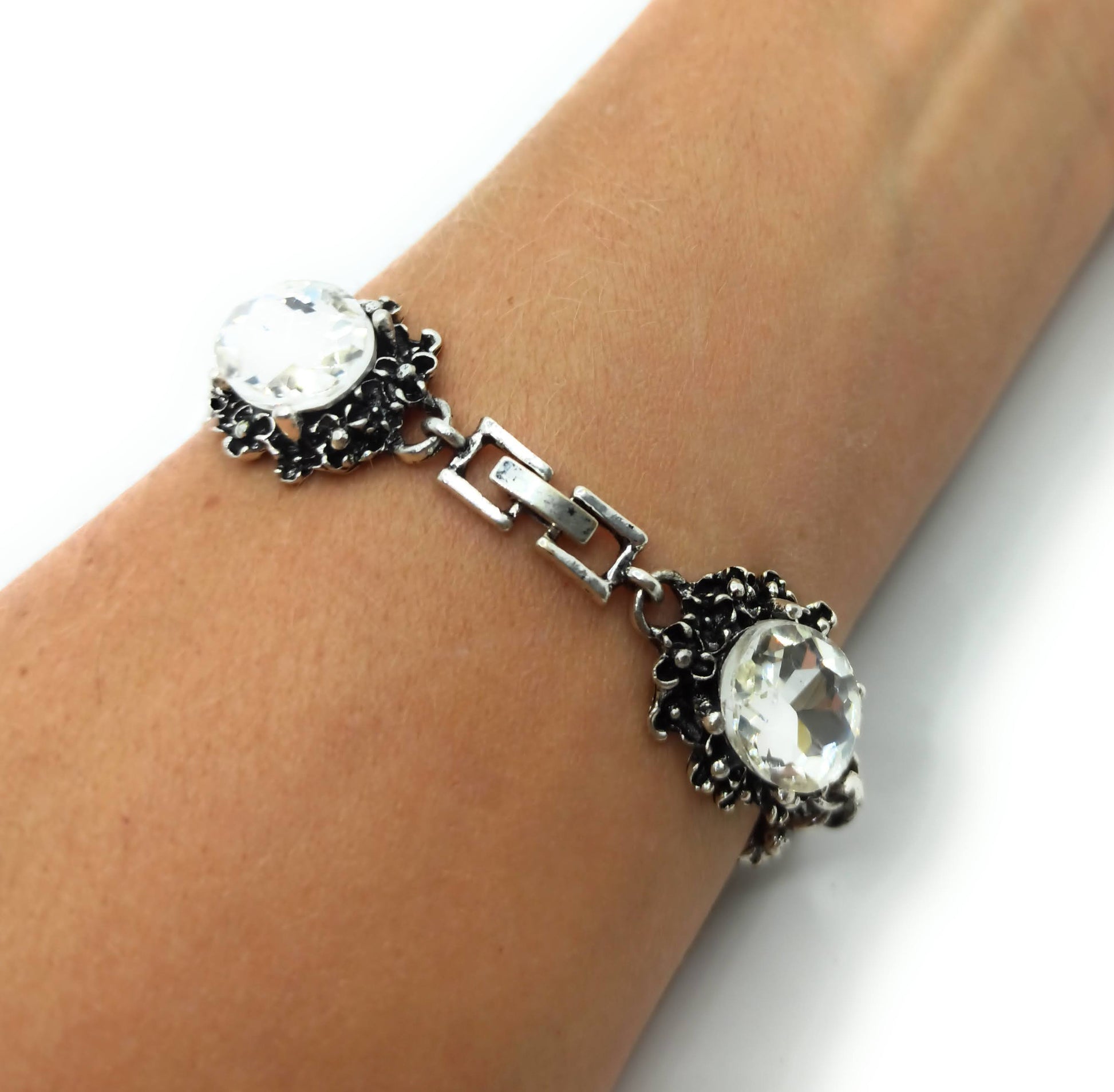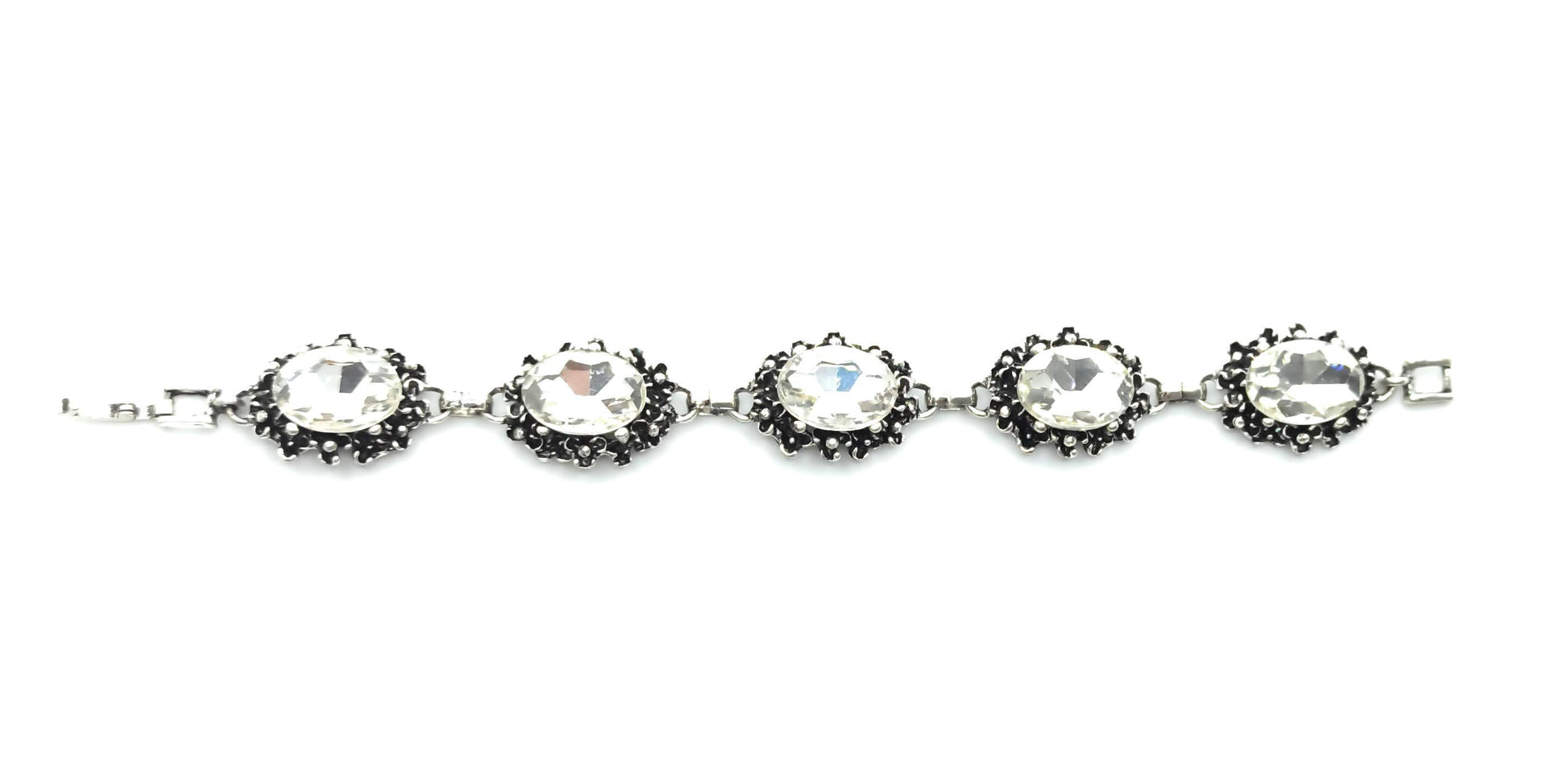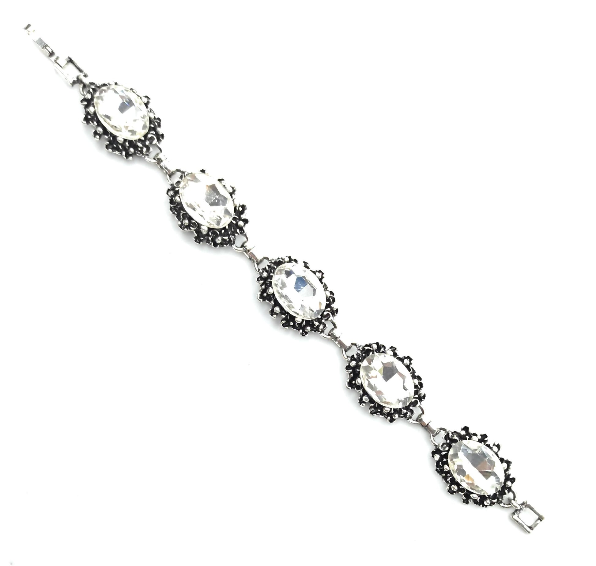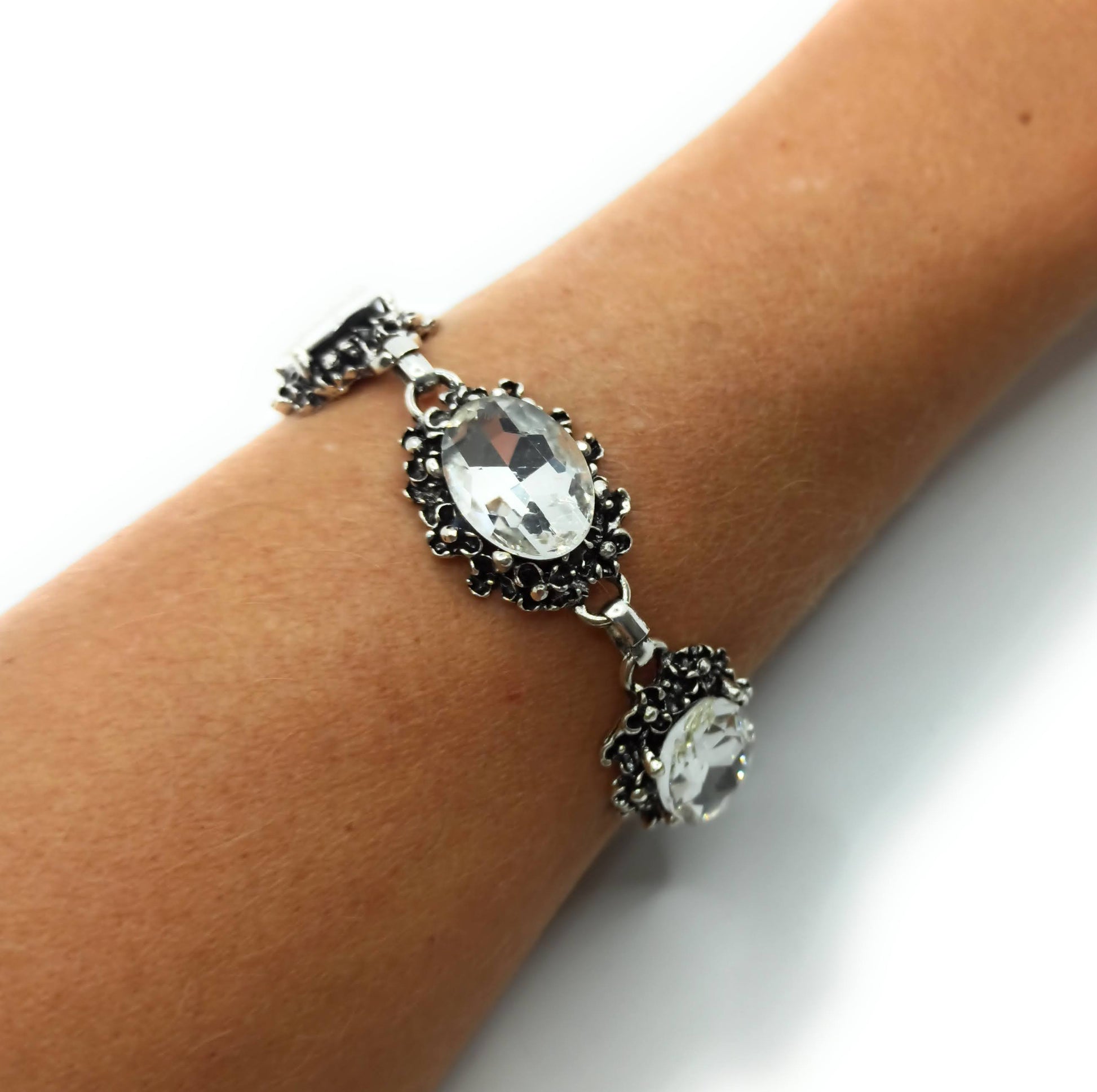 - Pulsera de metal, chapado en plata con Cristales Facetados Brillantes