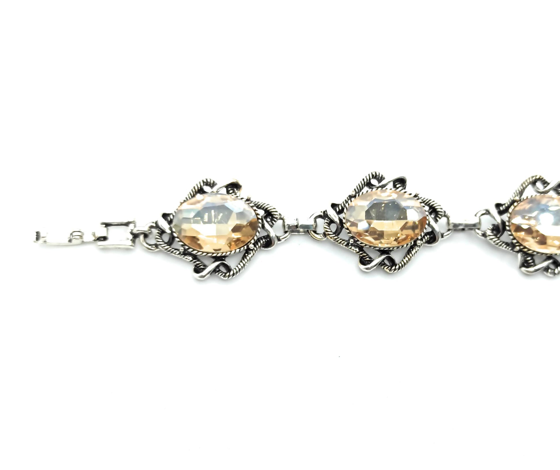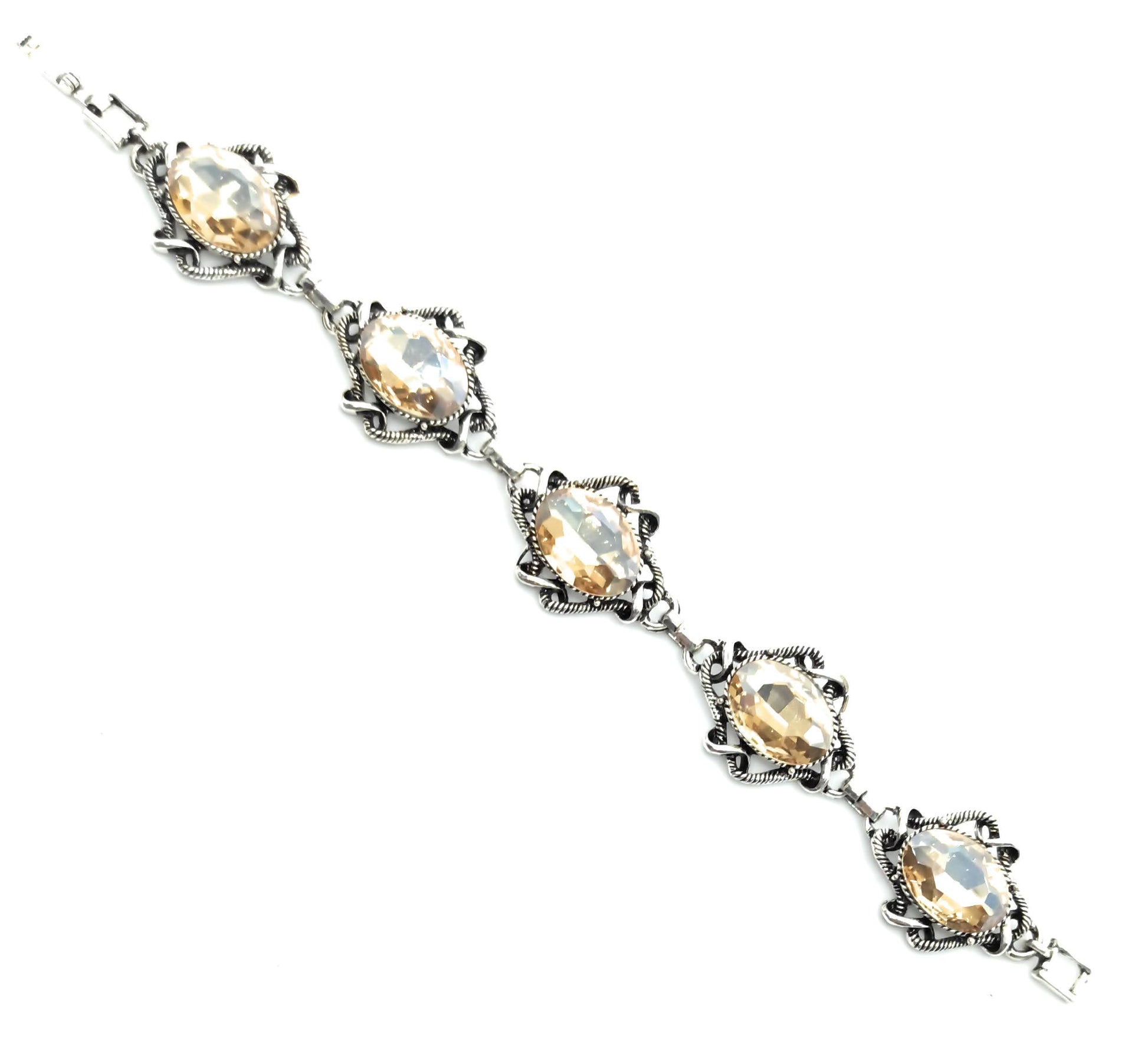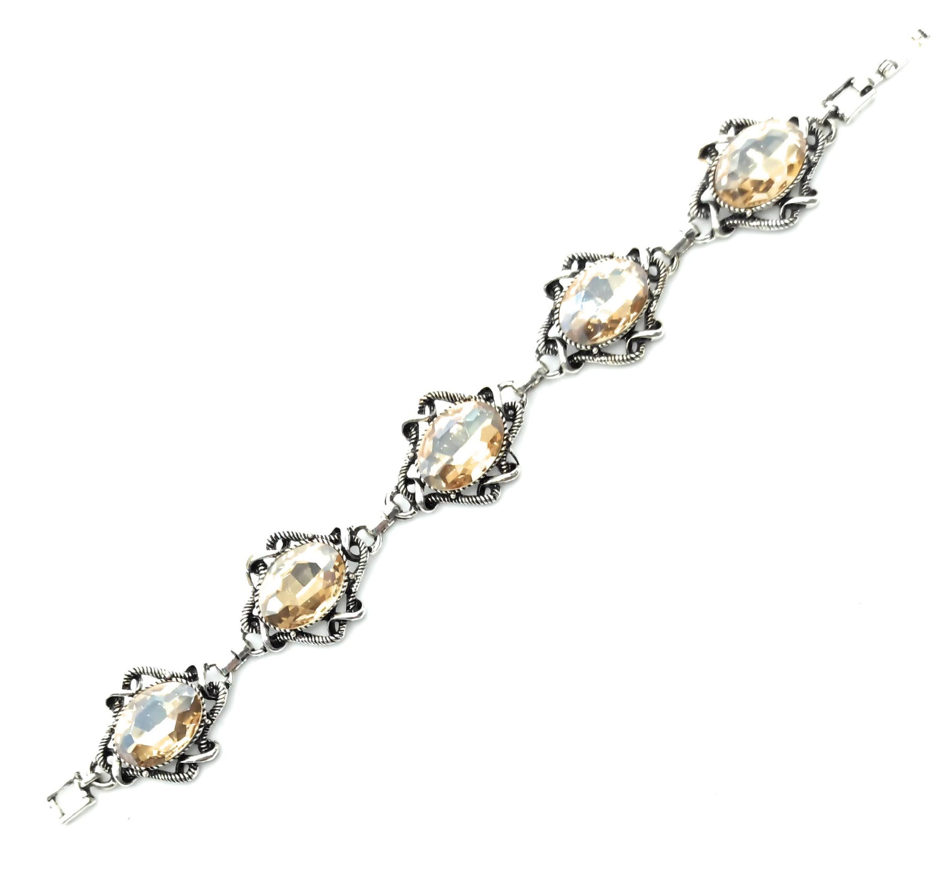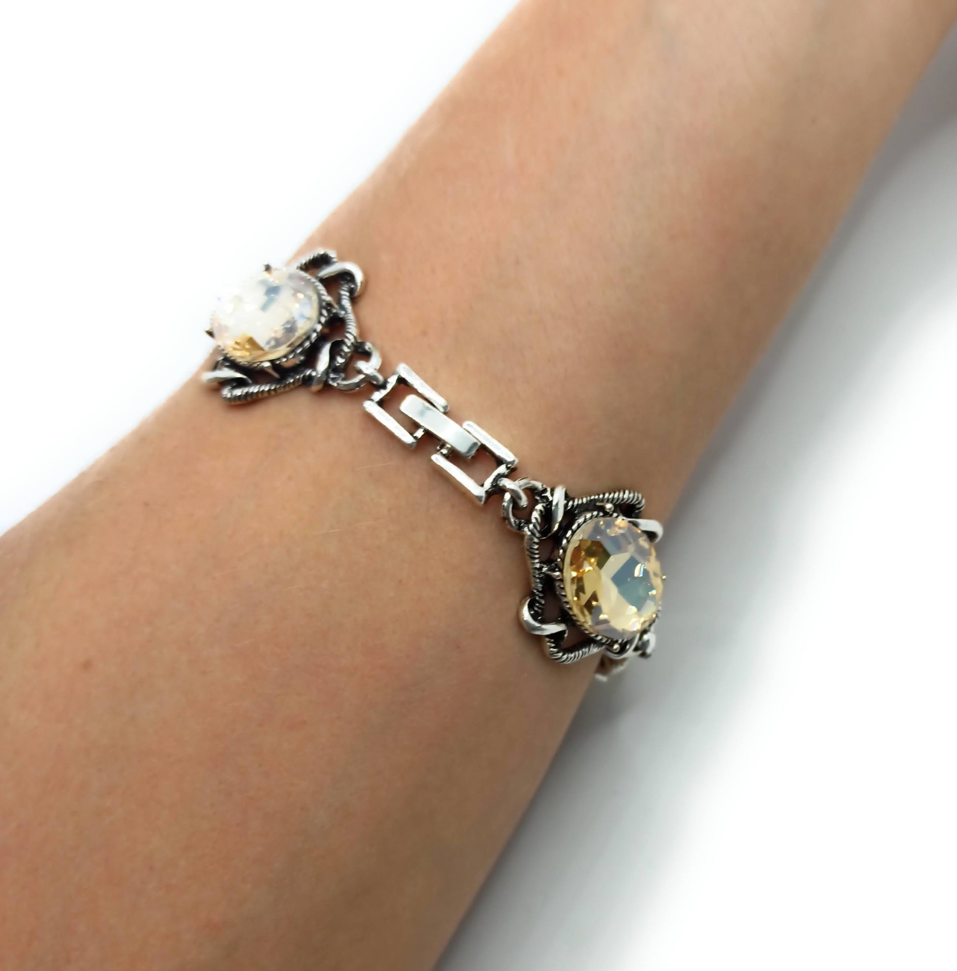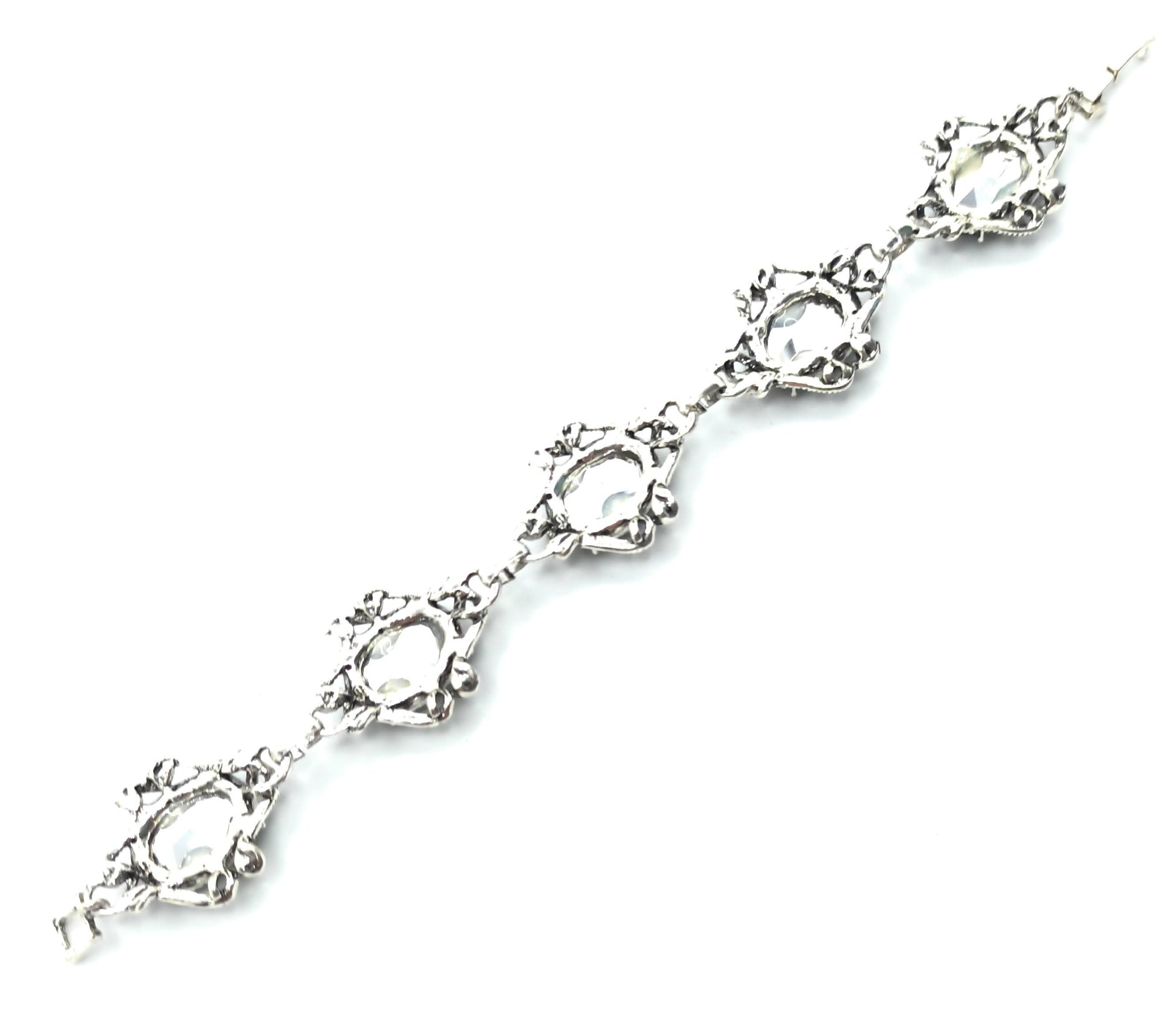 - Pulsera de metal, chapado en plata con Cristales Facetados Brillantes