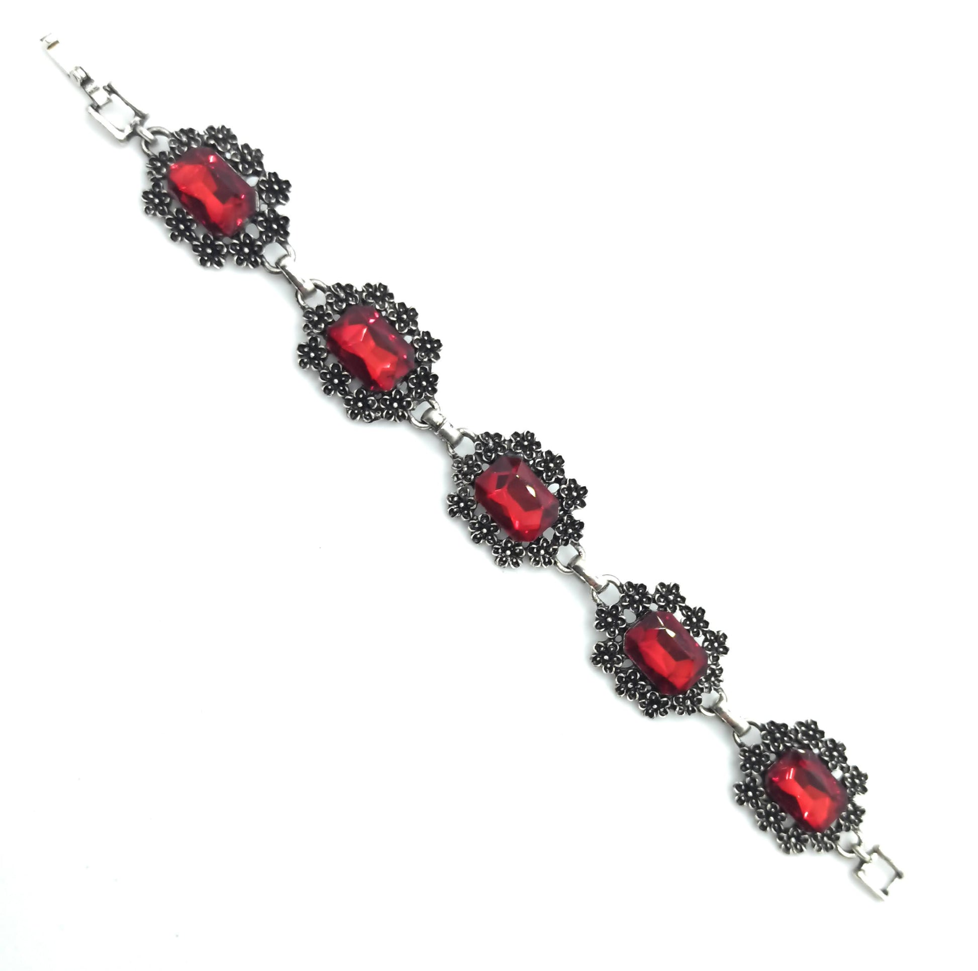 - Pulsera de metal, chapado en plata con Cristales Facetados Brillantes