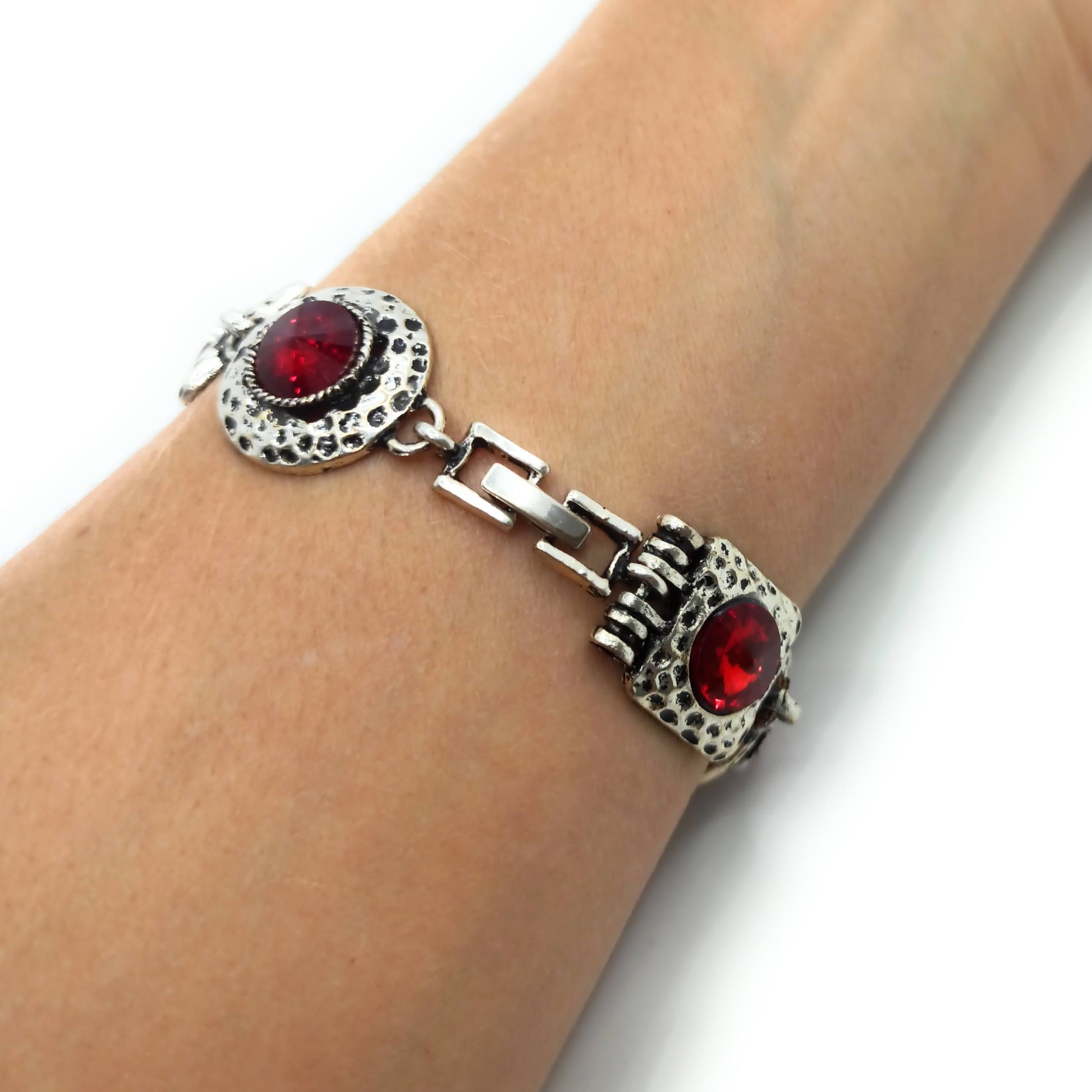 - Pulsera de metal, chapado en plata con Cristales Facetados Brillantes