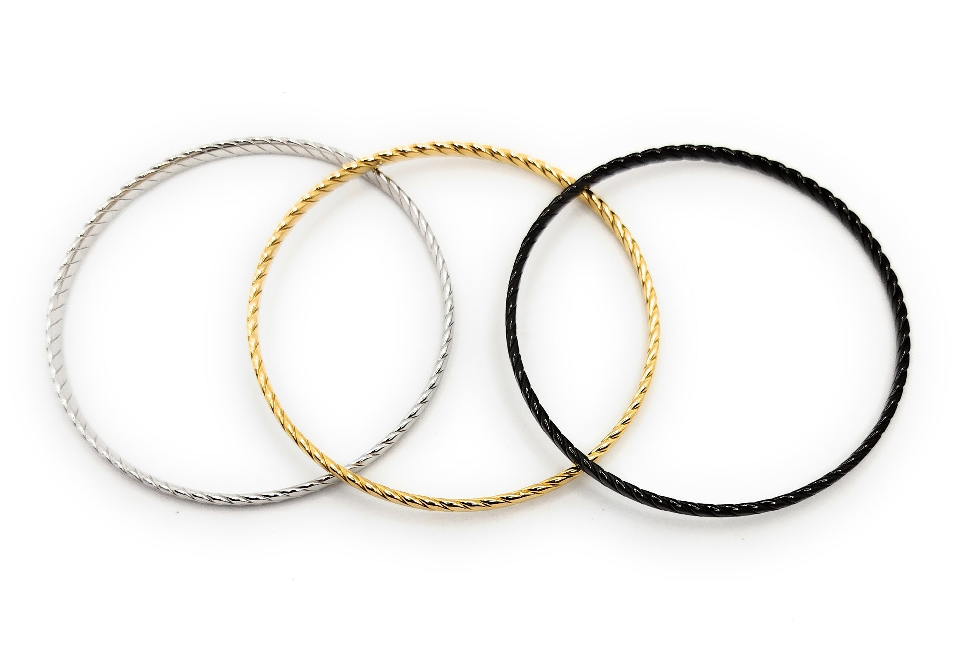 • Pack de 3 brazaletes: Oro amarillo · Plata · Negro